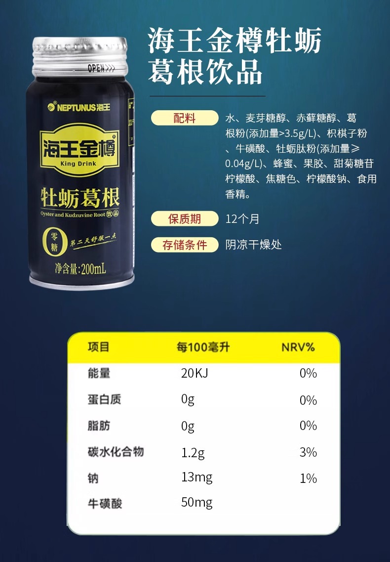 Neptunus 황금 병 굴 kudzu 뿌리 음료 제로 설탕 200ml * 24 병 0 설탕 도매 머리카락스토어 가기
