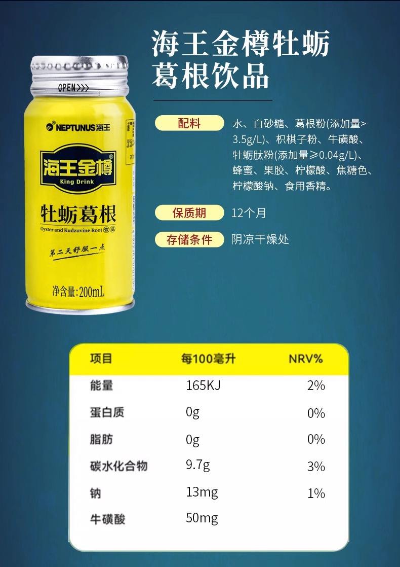 Neptunus 황금 병 굴 kudzu 뿌리 음료 제로 설탕 200ml * 24 병 0 설탕 도매 머리카락