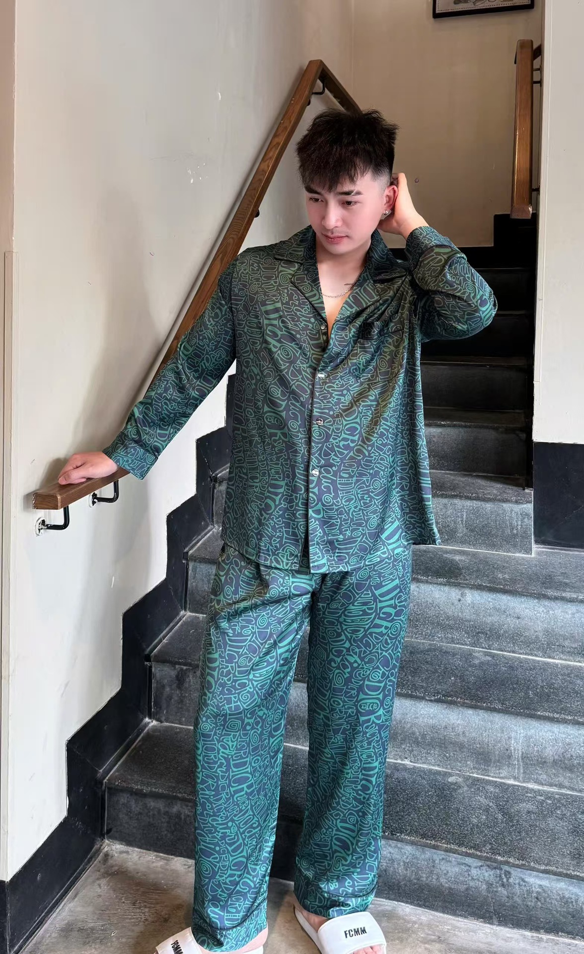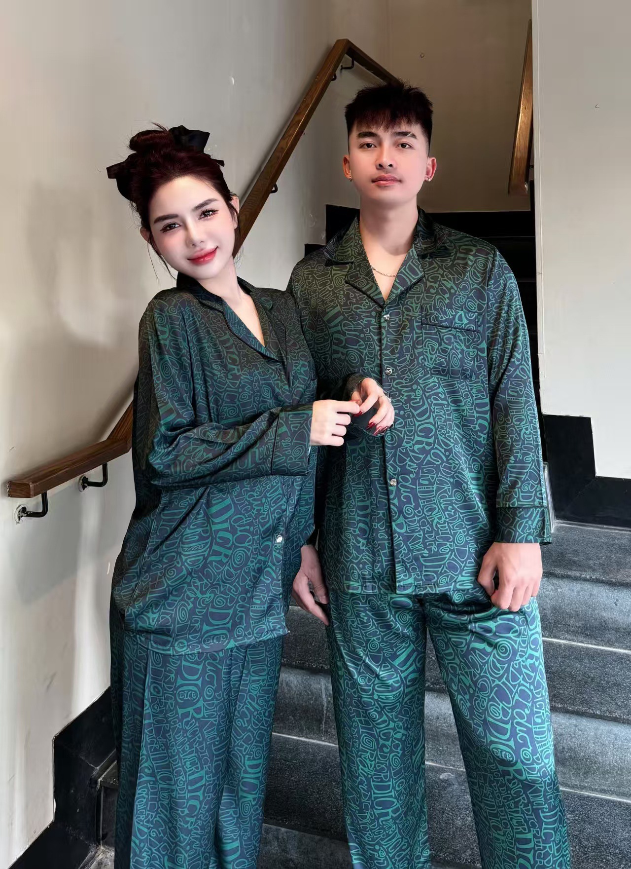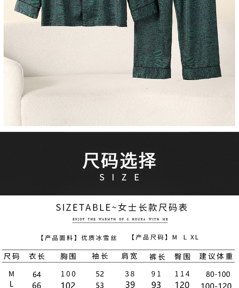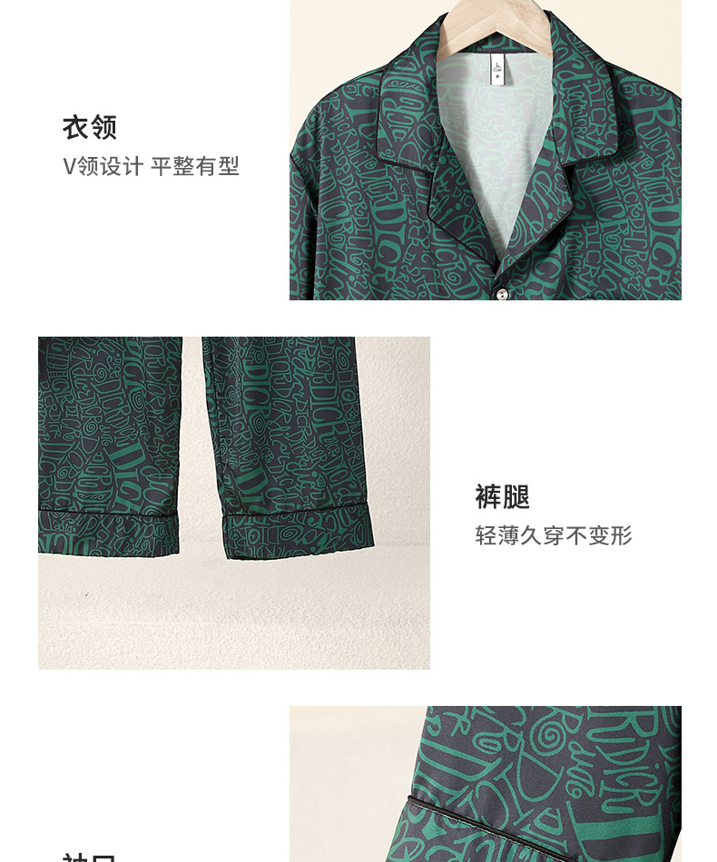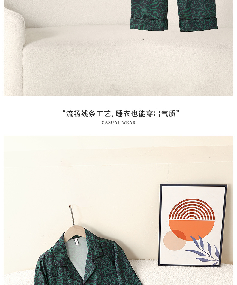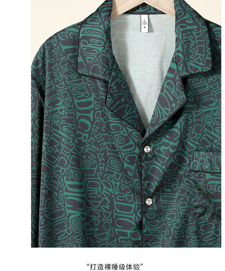 D 홈 전체 인쇄 편지 커플 가벼운 고급 고급 고급 파자마 유럽과 미국 스타일의 큰 브랜드 아이스 실크 홈 옷 긴 소매 세트