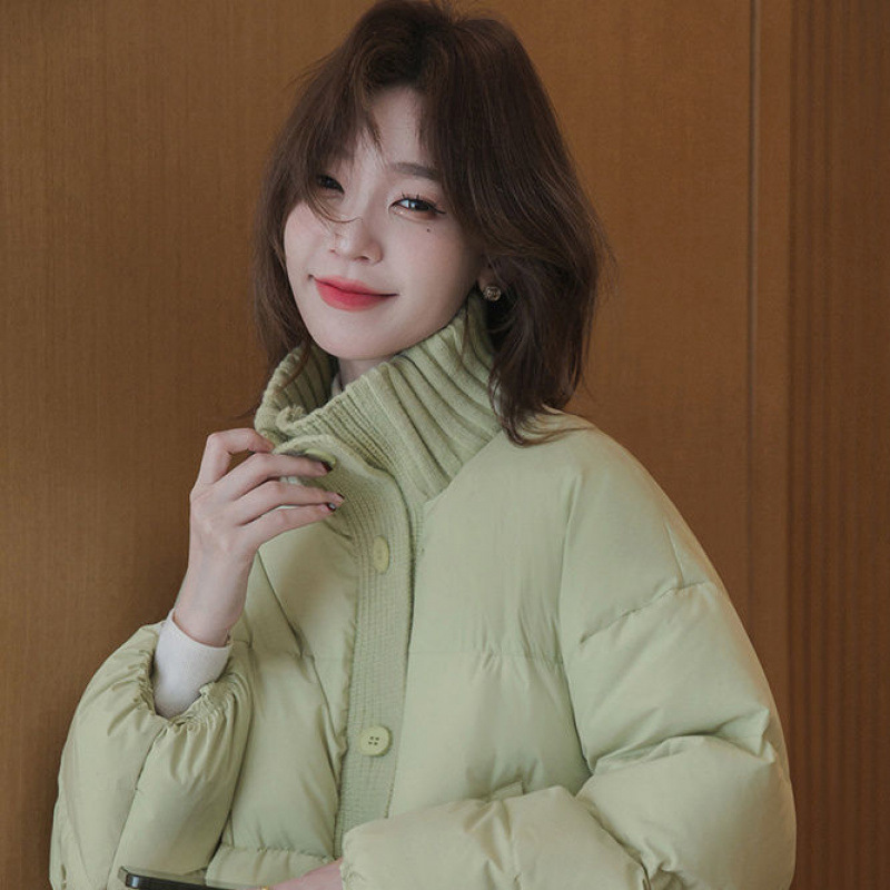 여성을 위한 스탠드 칼라 패치워크 면 코트 디자인 2024 새로운 겨울 한국 스타일 작은 신선한 짧은 빵 코트로 추위로부터 보호
