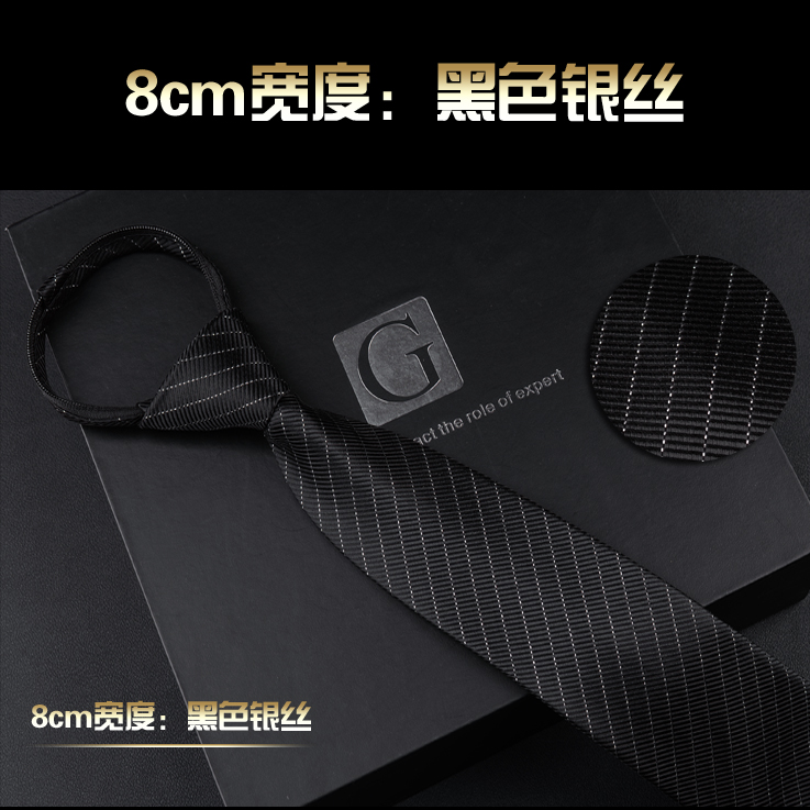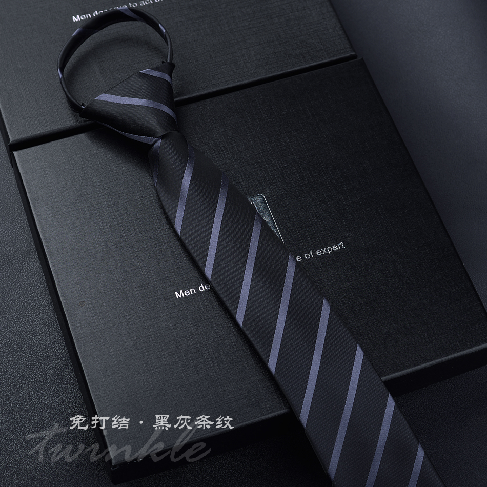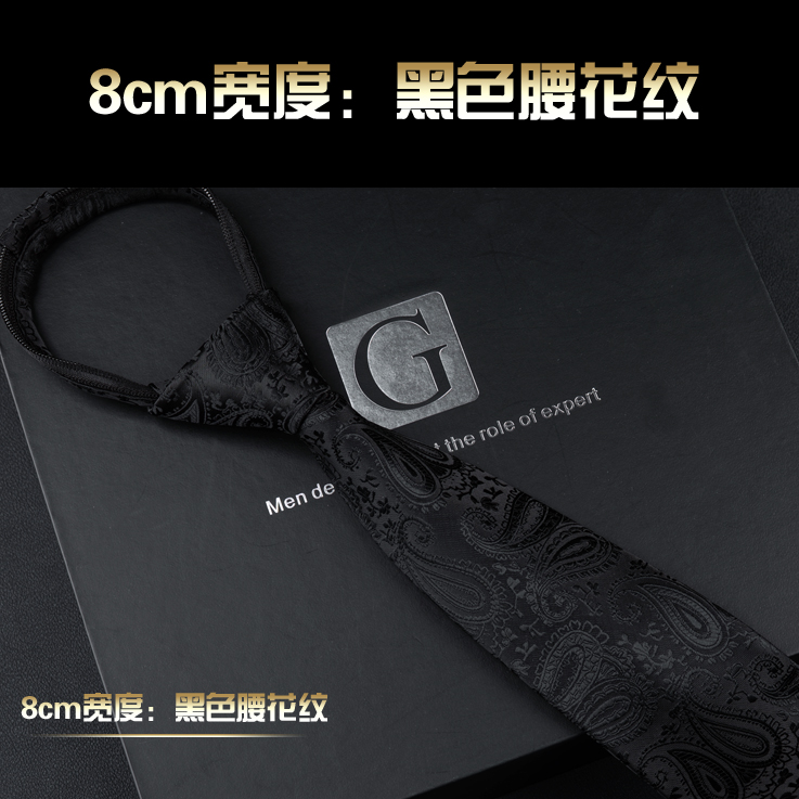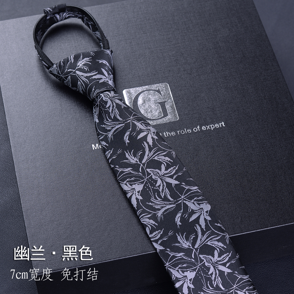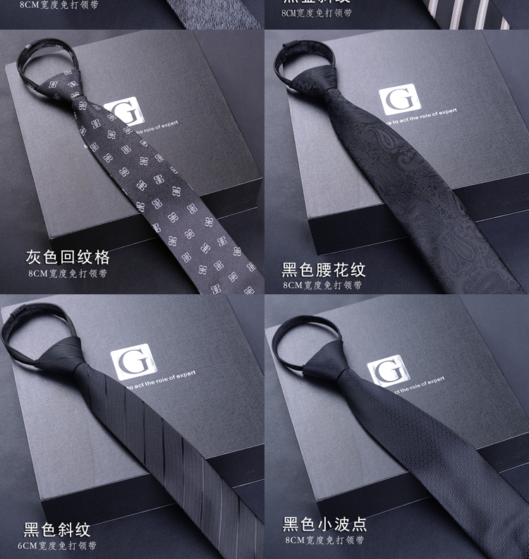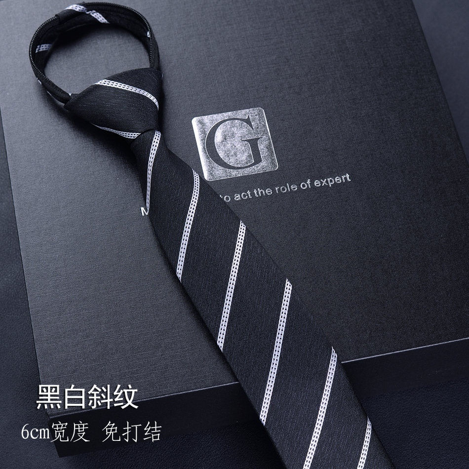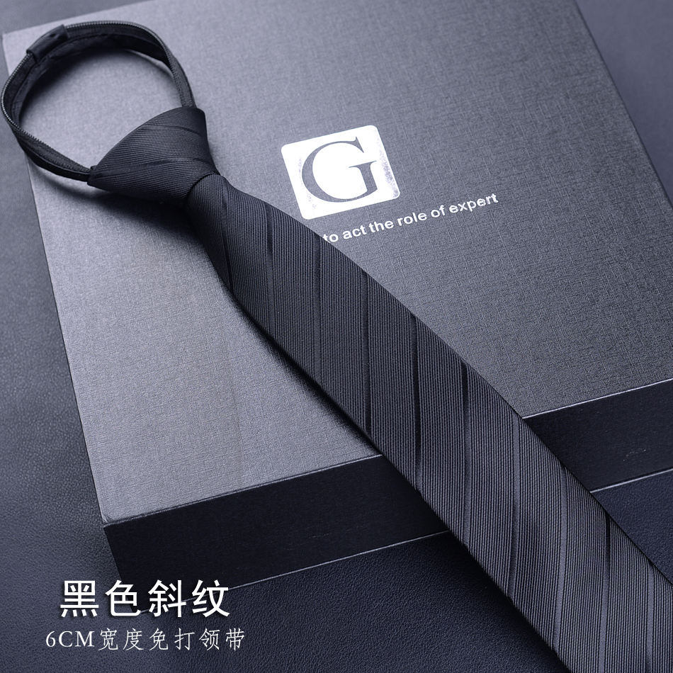 블랙 매듭-프리 넥타이 남자의 쉬운 풀 작업 학생 게으른 지퍼 풀 쉬운 단색 넥타이 남자의 월간 셔츠스토어 가기