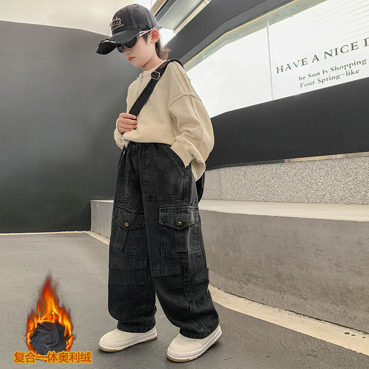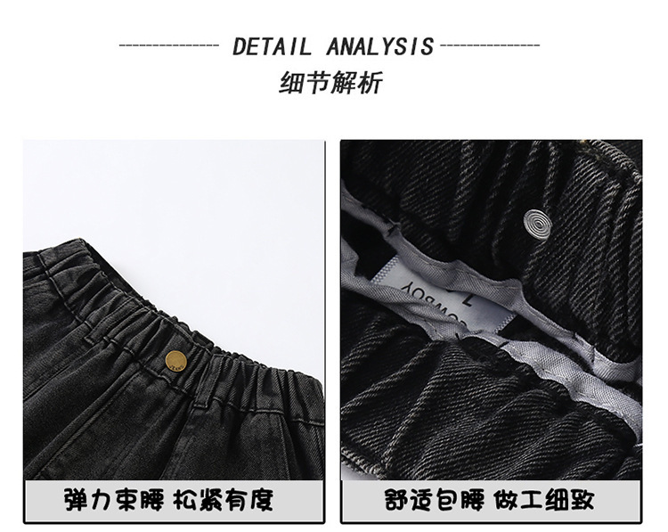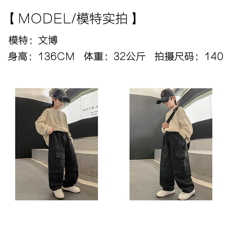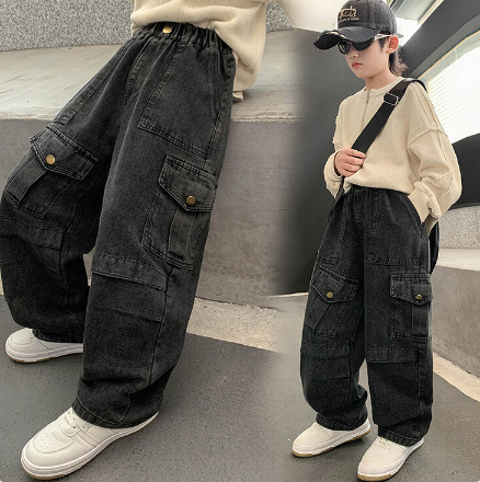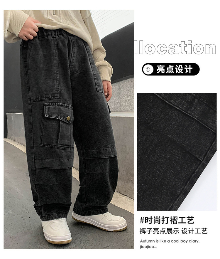소년 작업 청바지 가을 검은 한국 바지 2025 새로운 큰 어린이 느슨한 바지 어린이 가을 착용스토어 가기