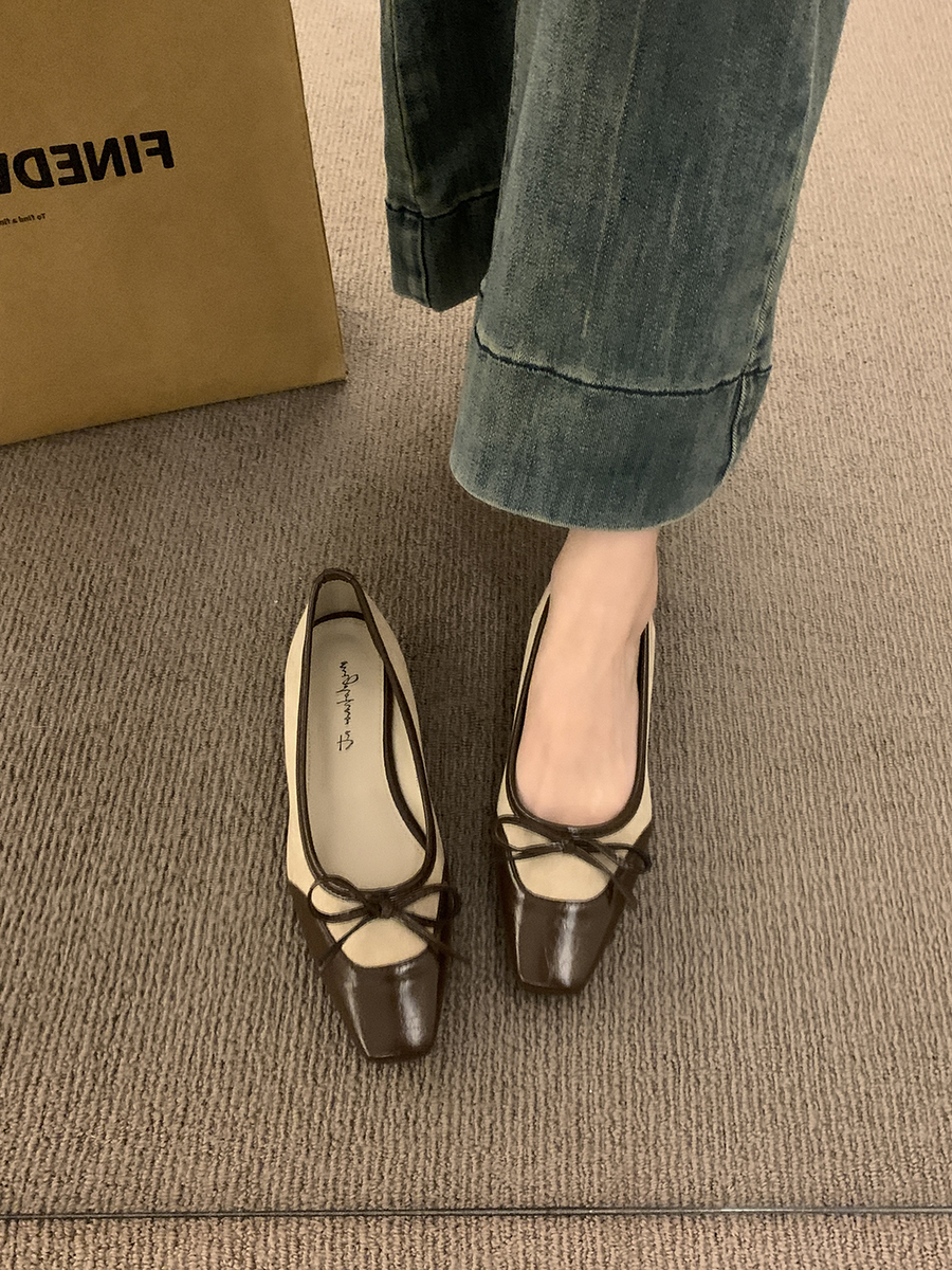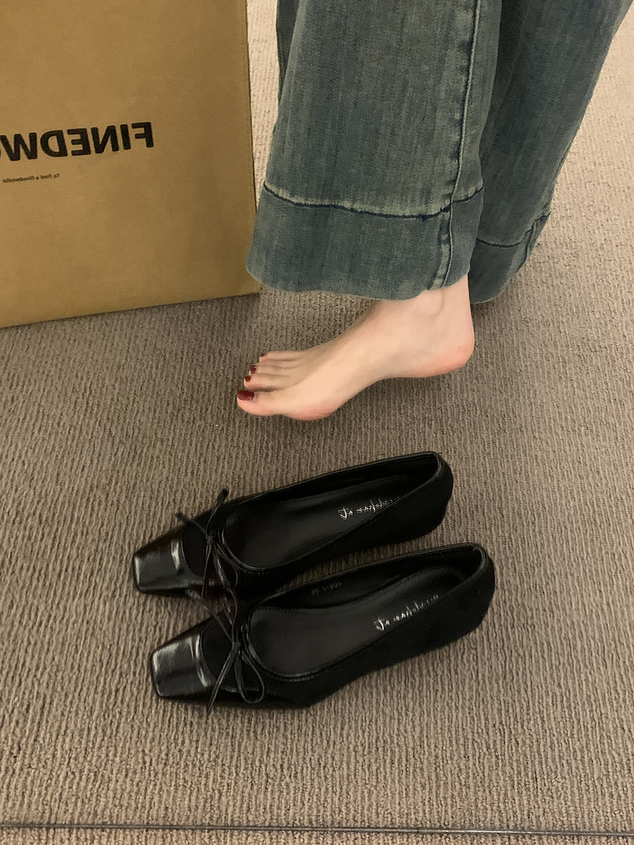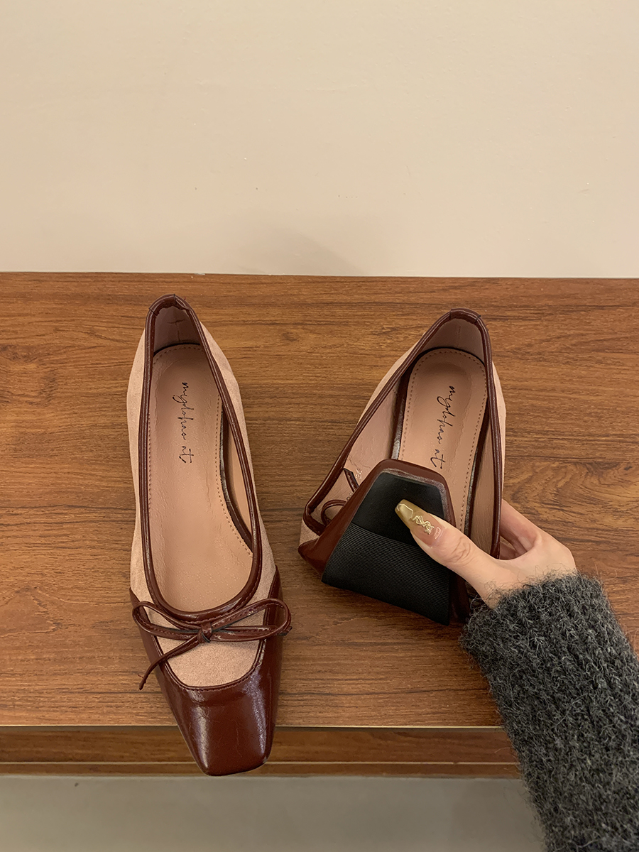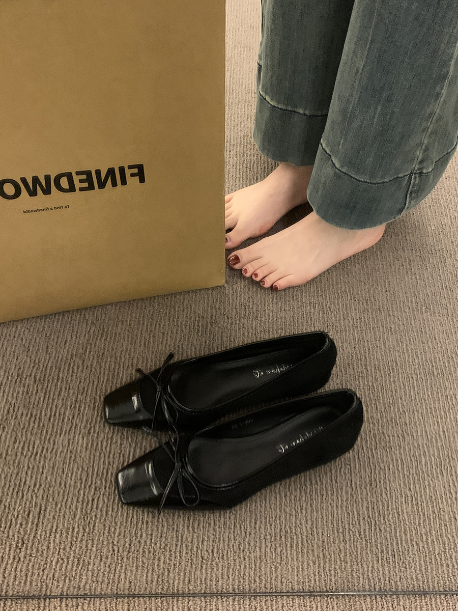 Chunky Heel 프랑스 봄과 가을 광장 헤드 블랙 싱글 신발 여성 신발 2025 새로운 빈티지 보우 샤넬 스타일 신발스토어 가기