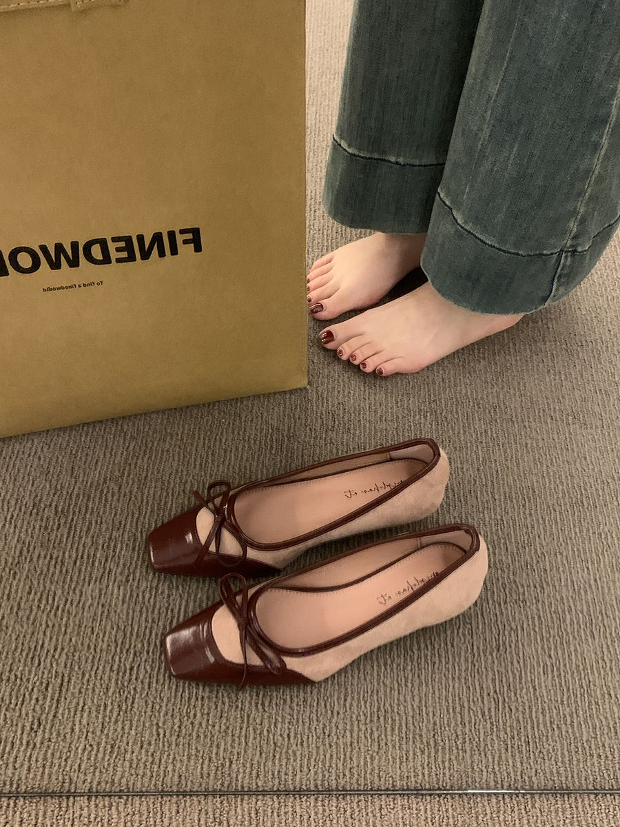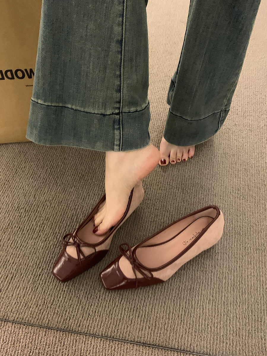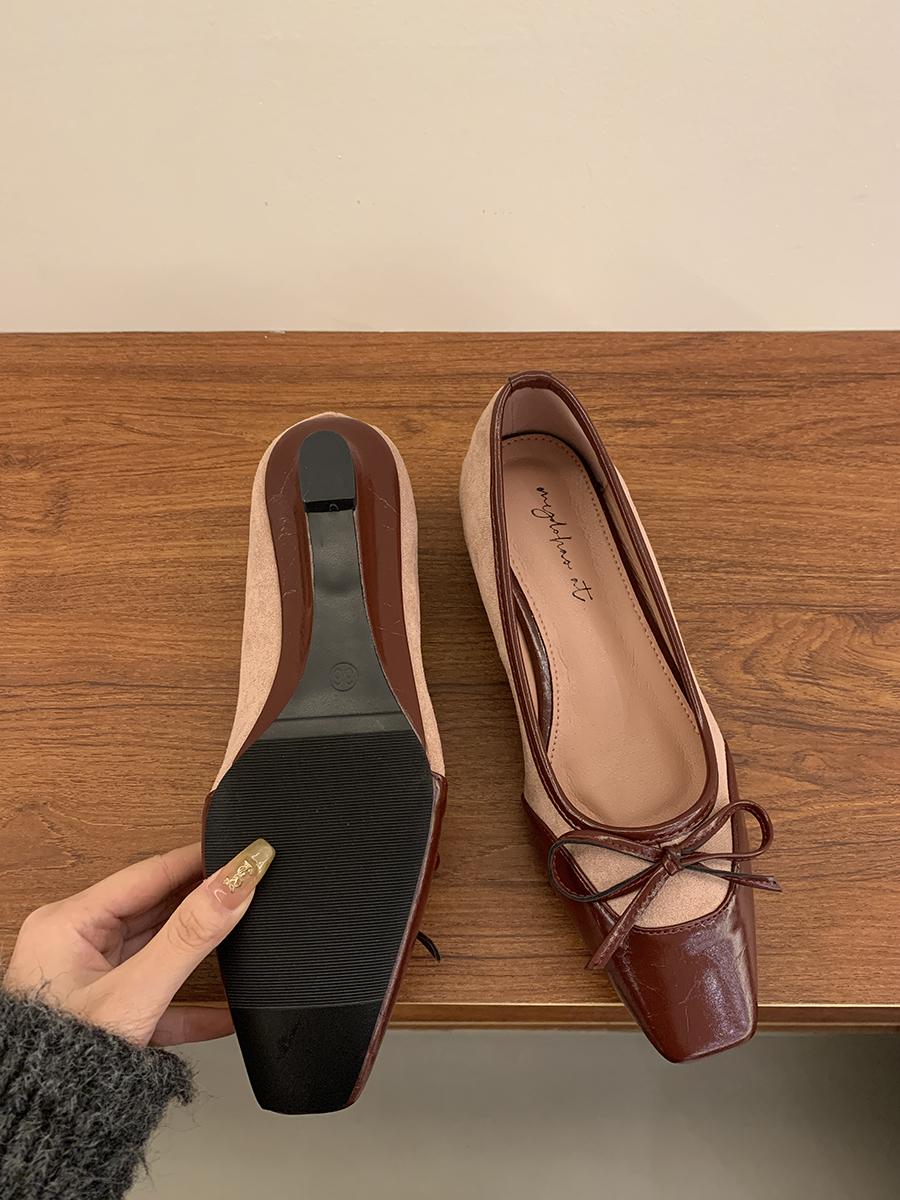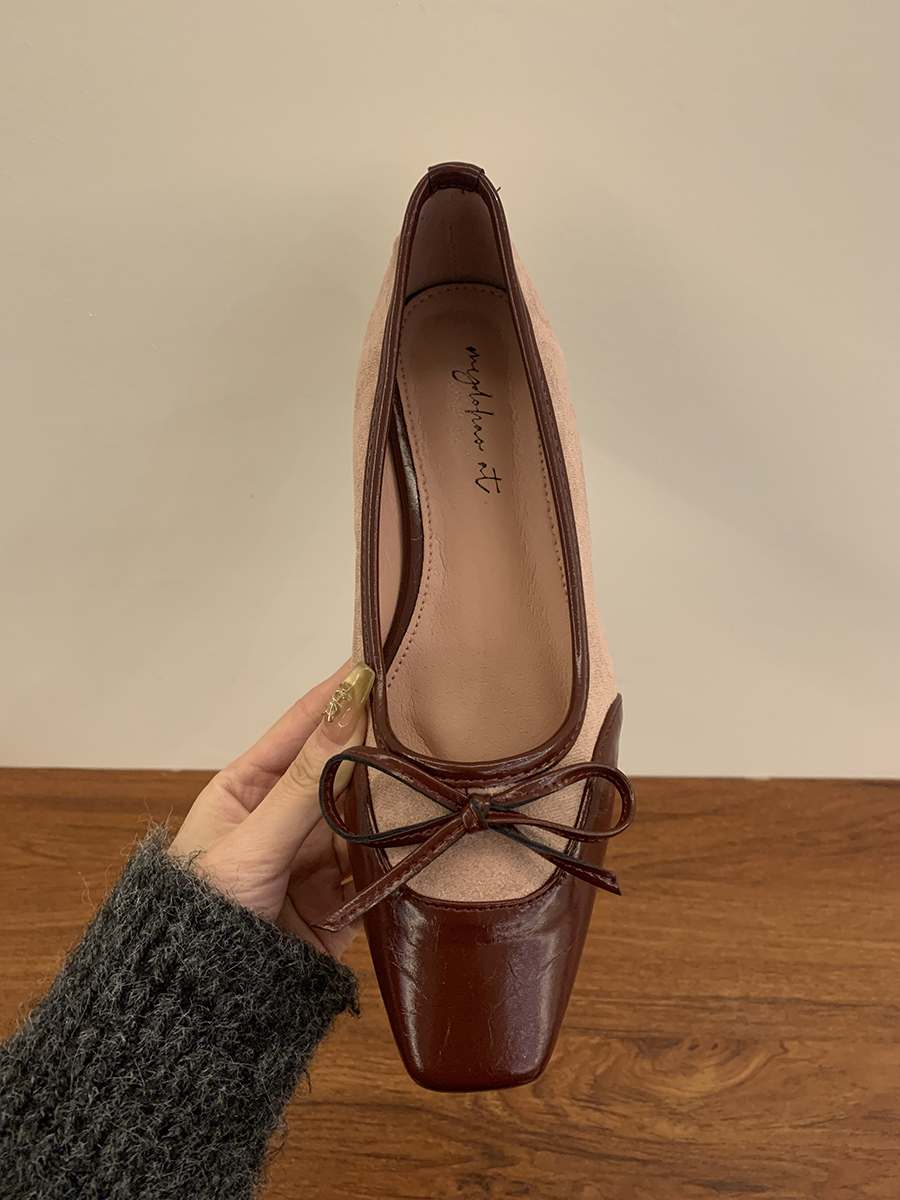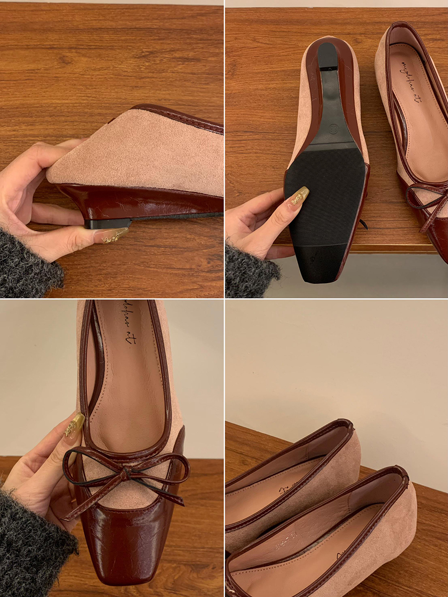 Chunky Heel 프랑스 봄과 가을 광장 헤드 블랙 싱글 신발 여성 신발 2025 새로운 빈티지 보우 샤넬 스타일 신발스토어 가기