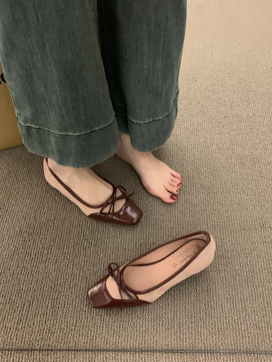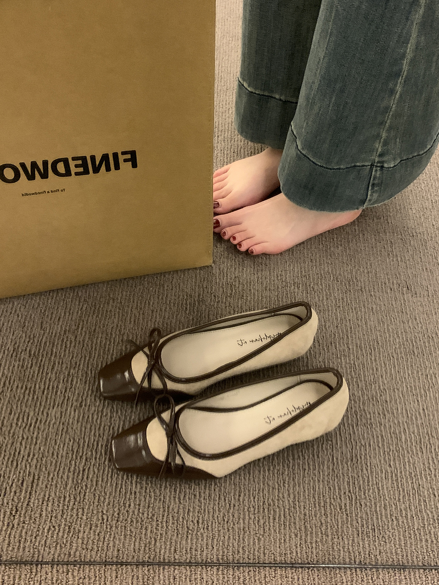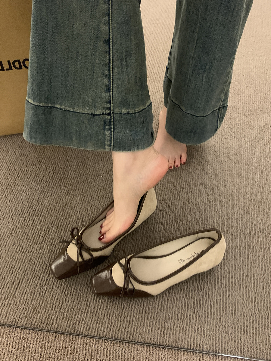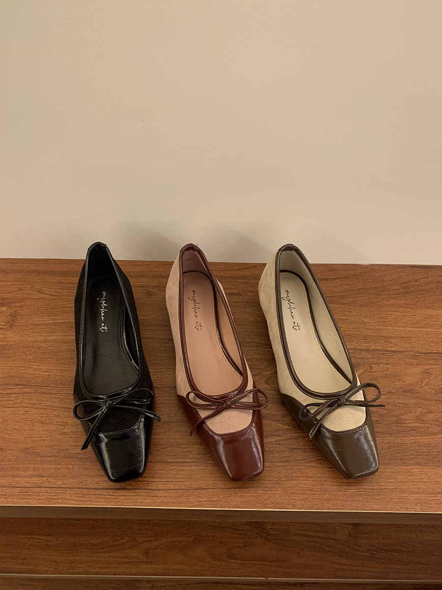 Chunky Heel 프랑스 봄과 가을 광장 헤드 블랙 싱글 신발 여성 신발 2025 새로운 빈티지 보우 샤넬 스타일 신발스토어 가기