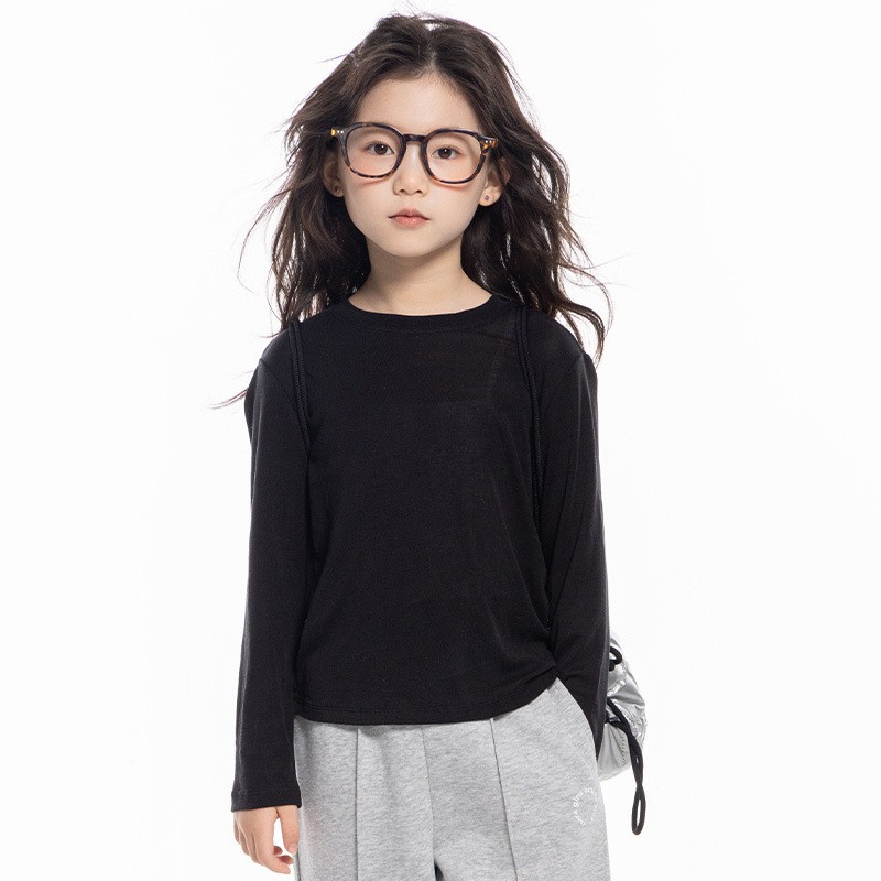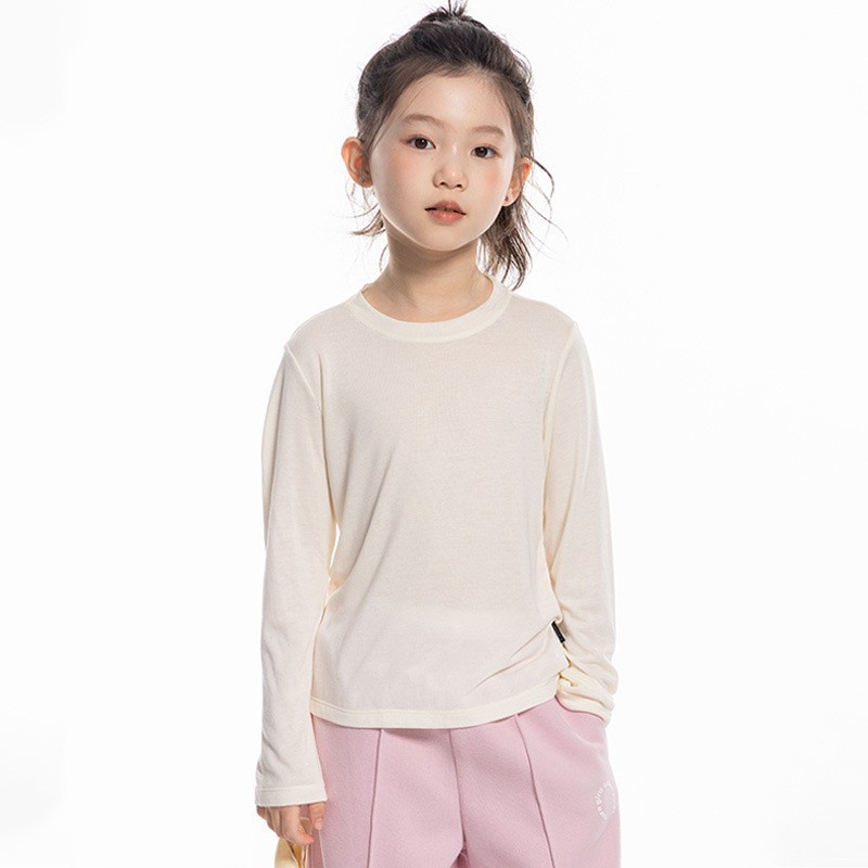 여자 텐셀 울 긴팔 티셔츠 2025 봄 새 어린이 쌓인 캐주얼 베이스 올 매치 패션 탑스토어 가기