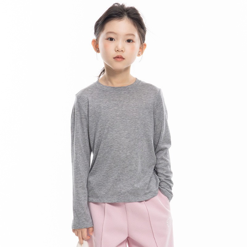 여자 텐셀 울 긴팔 티셔츠 2025 봄 새 어린이 쌓인 캐주얼 베이스 올 매치 패션 탑