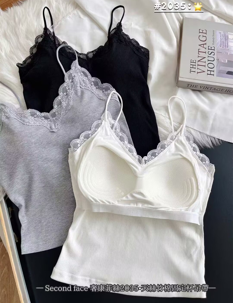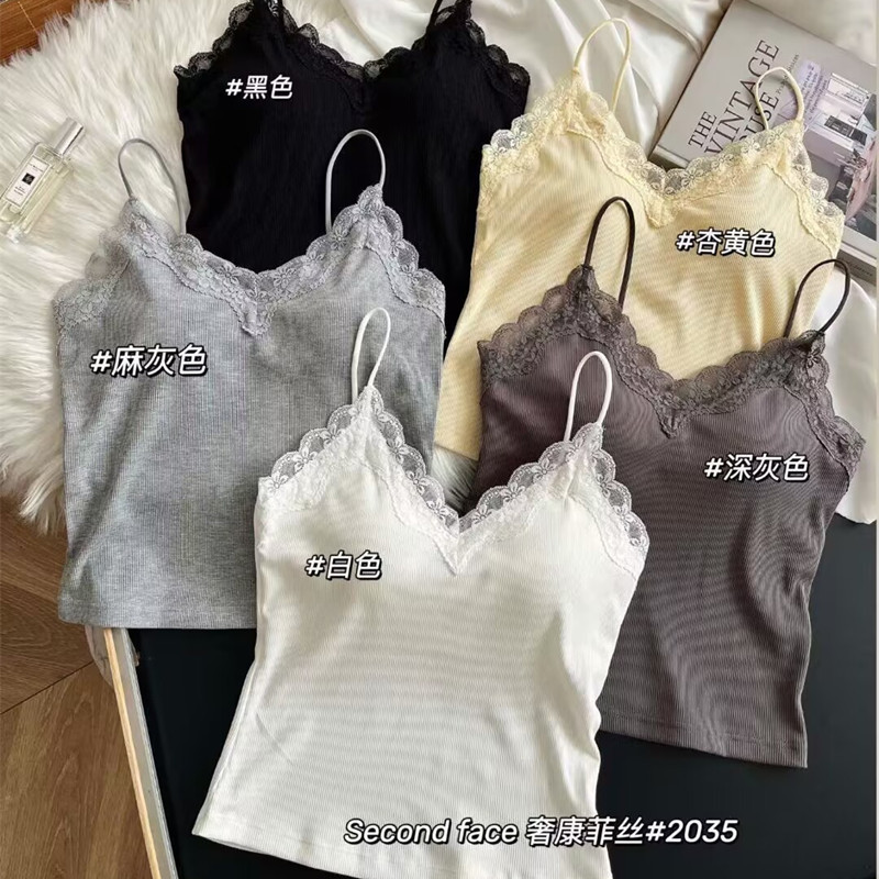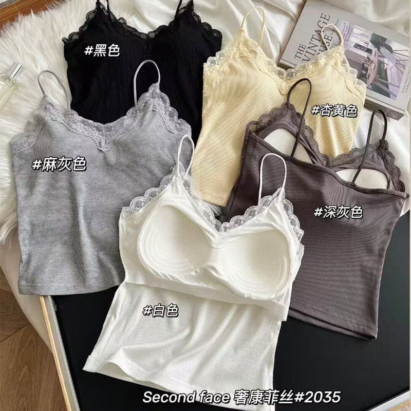 Feng Zhixin 2035 Sexy Lace Spice Camisole 여자 고정 컵 내부 착용 외부 착용 베이스 스트랩리스 탑스토어 가기