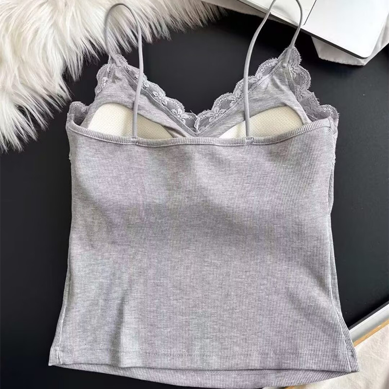 Feng Zhixin 2035 Sexy Lace Spice Camisole 여자 고정 컵 내부 착용 외부 착용 베이스 스트랩리스 탑