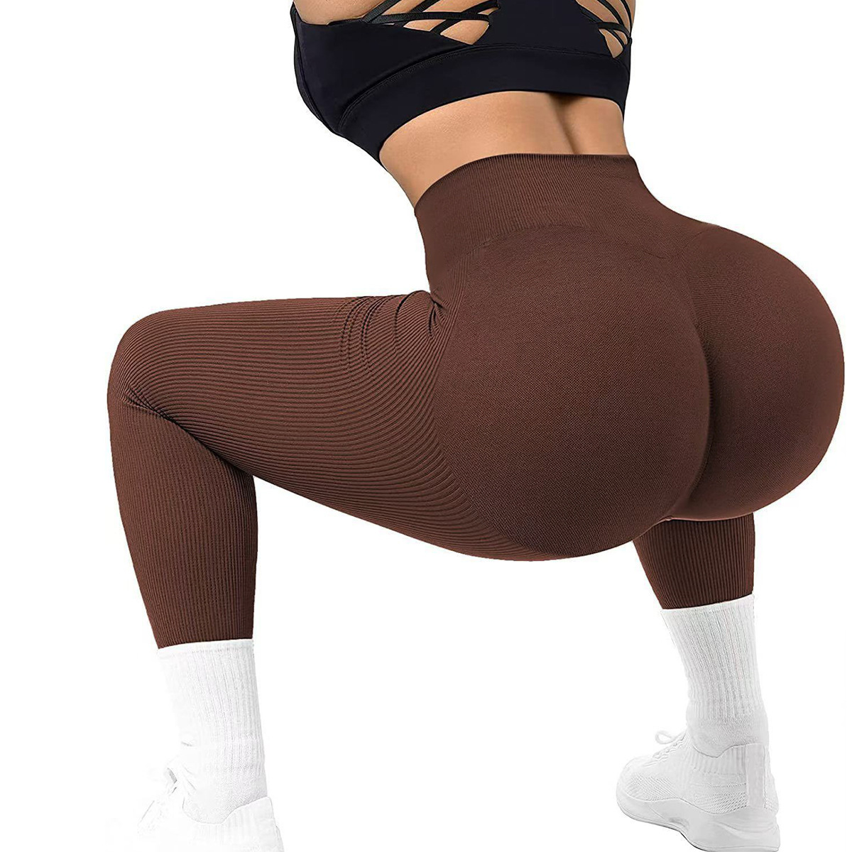 아마존 국경 유럽 및 미국 원활한 니트 스레드 복숭아 엉덩이 요가 바지 여성을위한 높은 탄성 스포츠 달리기 피트니스 바지