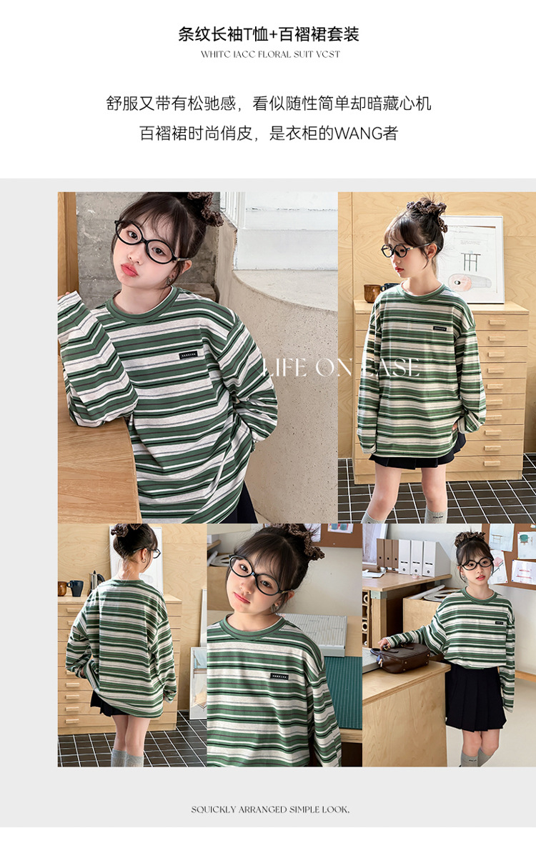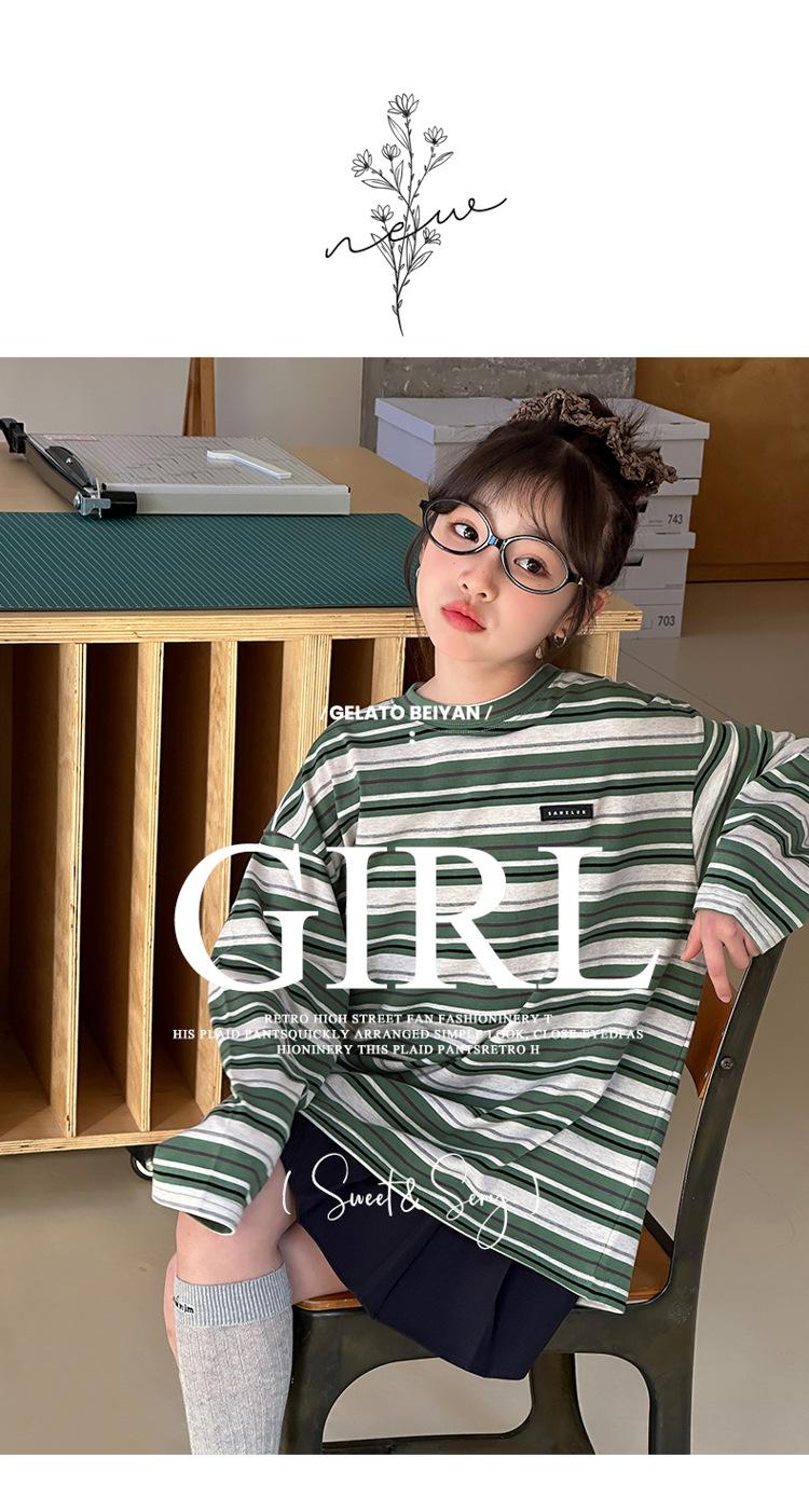 걸스 스트라이프 긴팔 티셔츠 2025 봄과 가을 새로운 올매치 라운드 넥 탑 빅 보이 웨스턴 스타일 한국베이스 셔츠 T