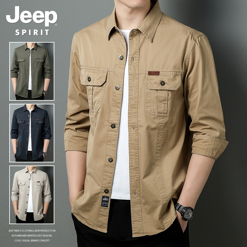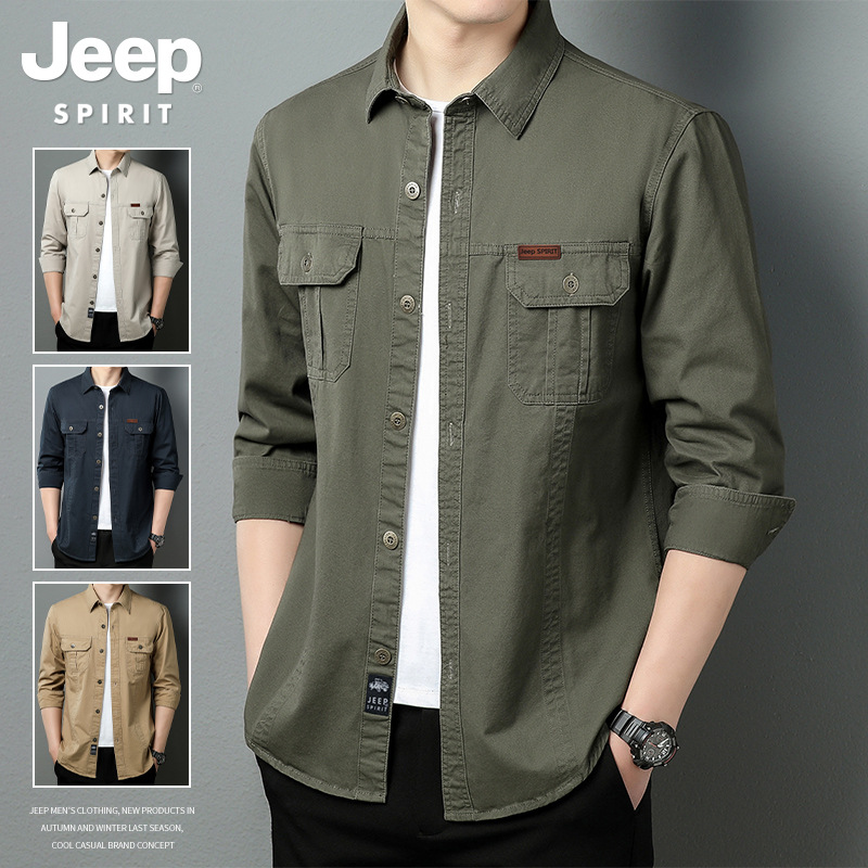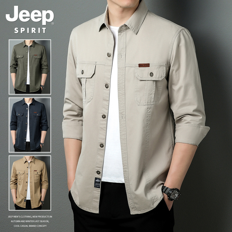 JEEP SPIRIT 브랜드 긴팔 셔츠 남자 봄과 가을 남자 한국 스타일 캐주얼 올 매치 세척 코튼 툴링스토어 가기