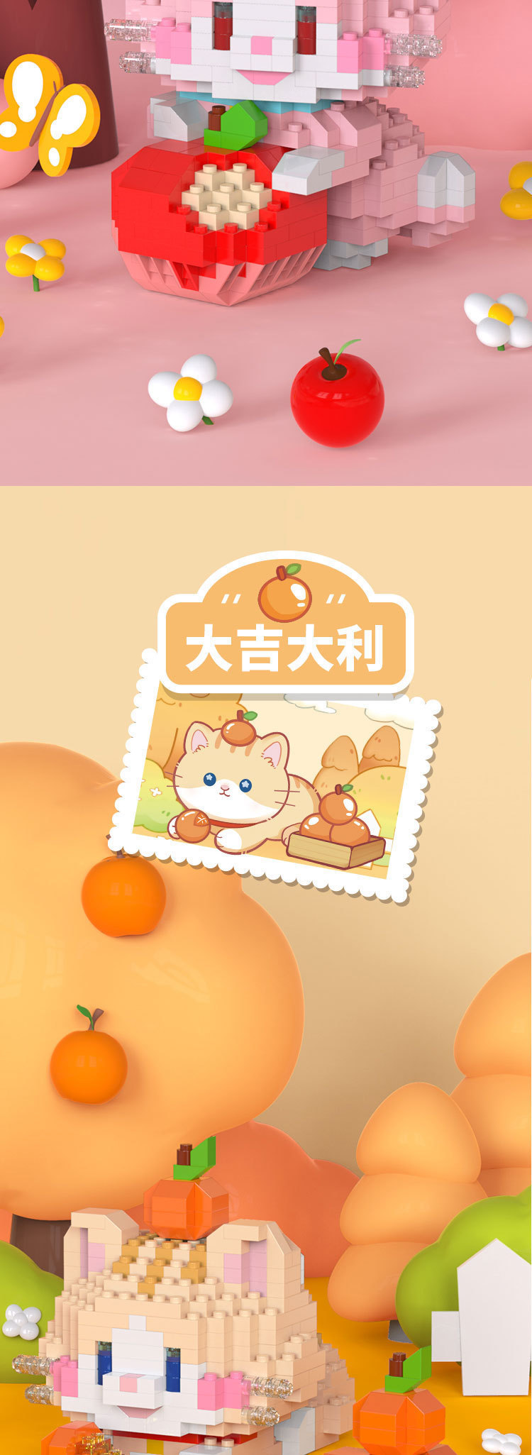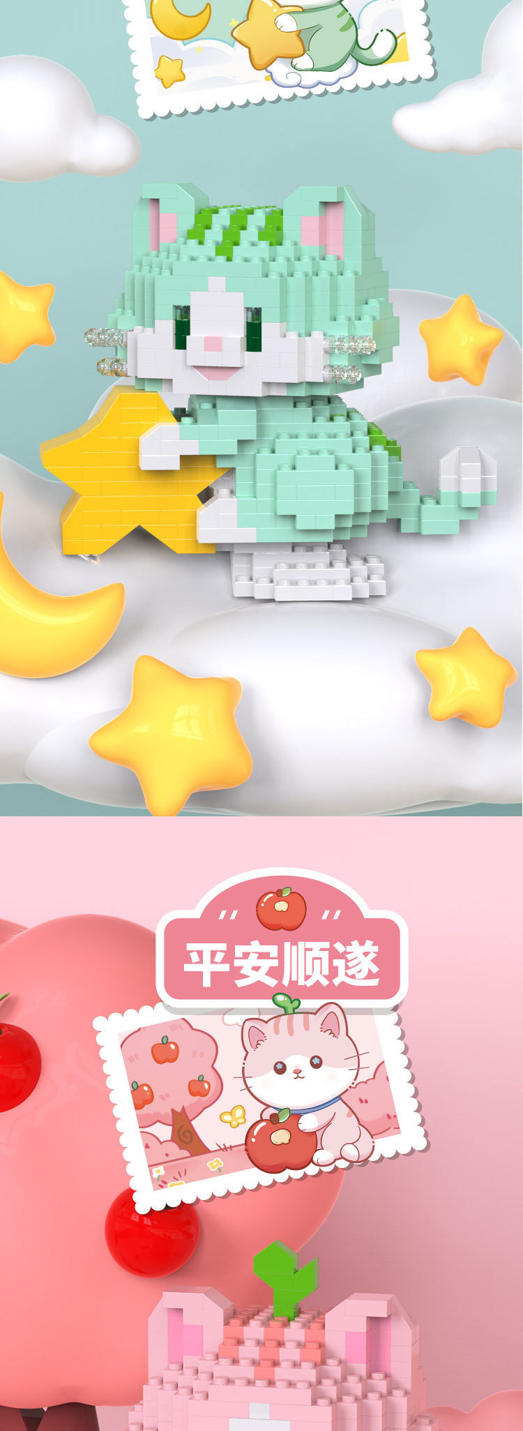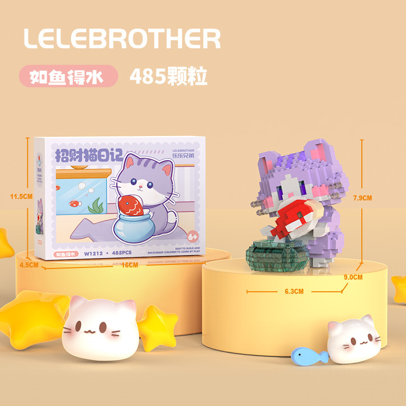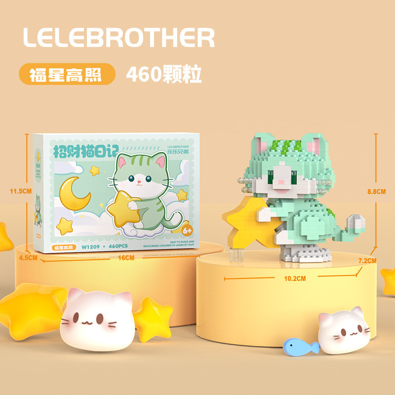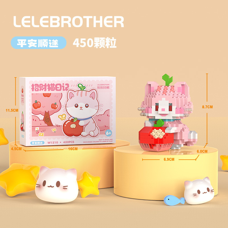Lele Brothers National Tide Luckie Cat Diary Microparticle 빌딩 블록 소년 소녀 교육 조립 장난감 빌딩 블록 장식품