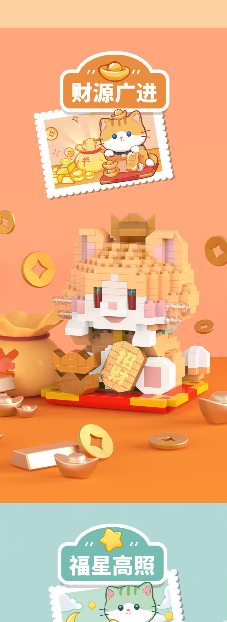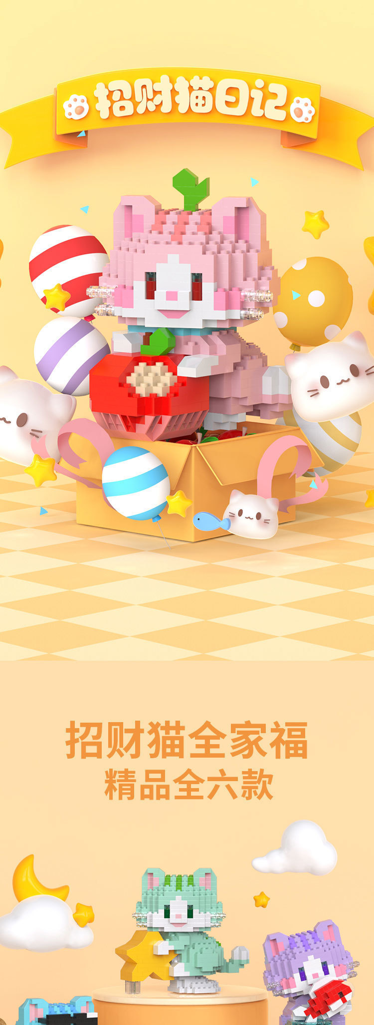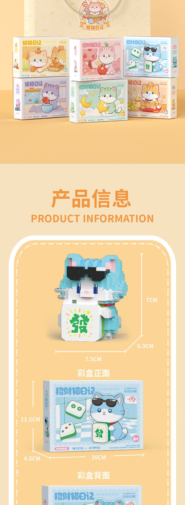 Lele Brothers National Tide Luckie Cat Diary Microparticle 빌딩 블록 소년 소녀 교육 조립 장난감 빌딩 블록 장식품스토어 가기