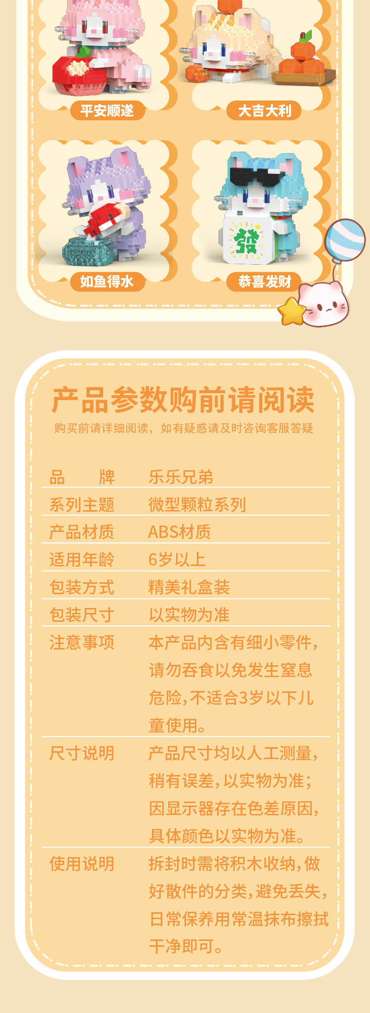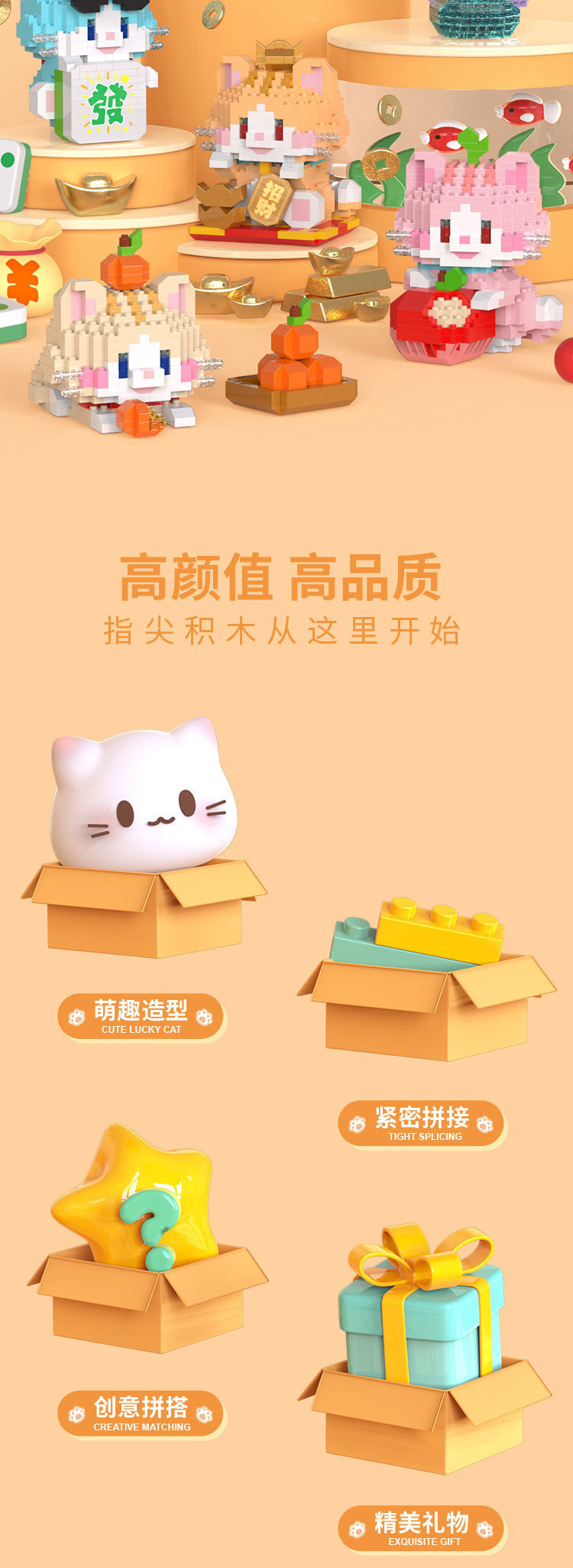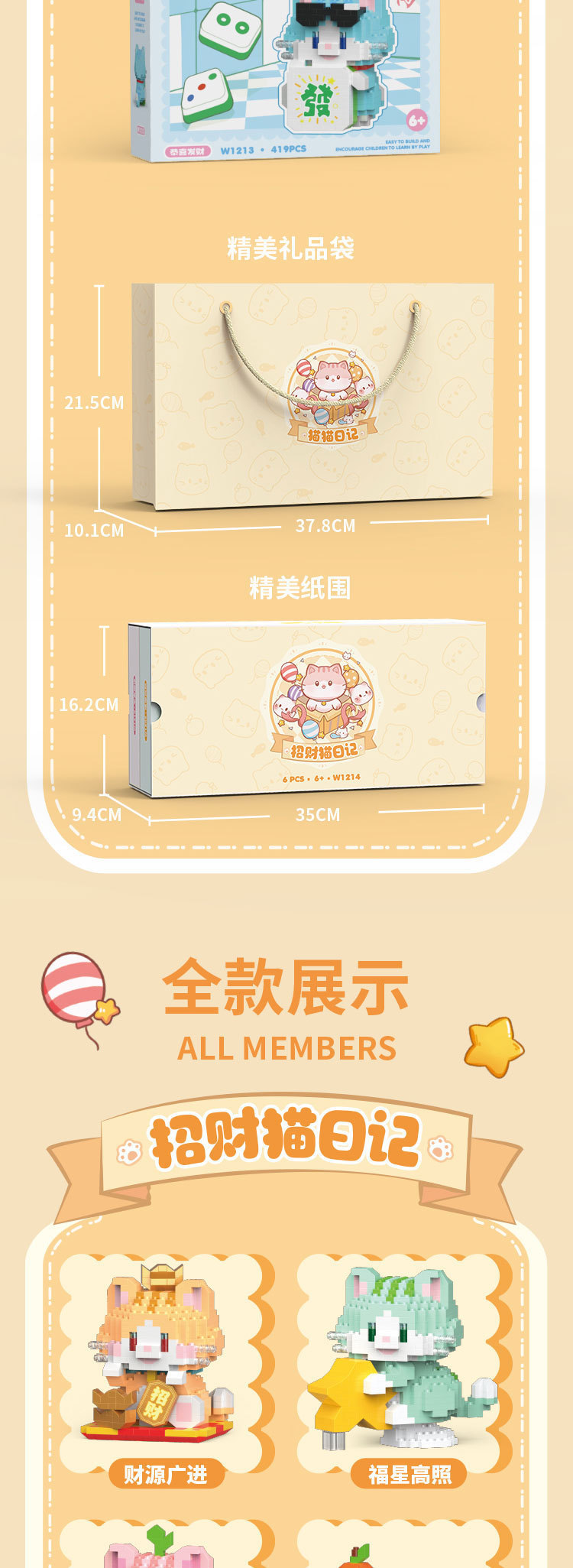 Lele Brothers National Tide Luckie Cat Diary Microparticle 빌딩 블록 소년 소녀 교육 조립 장난감 빌딩 블록 장식품스토어 가기