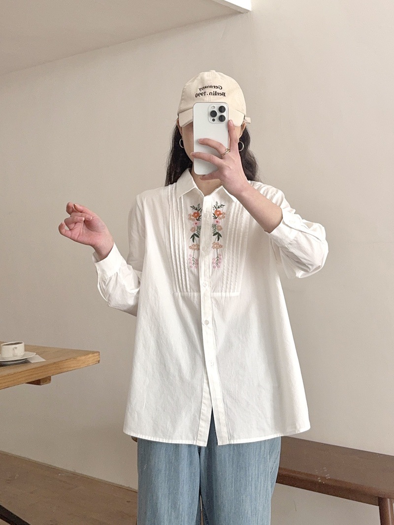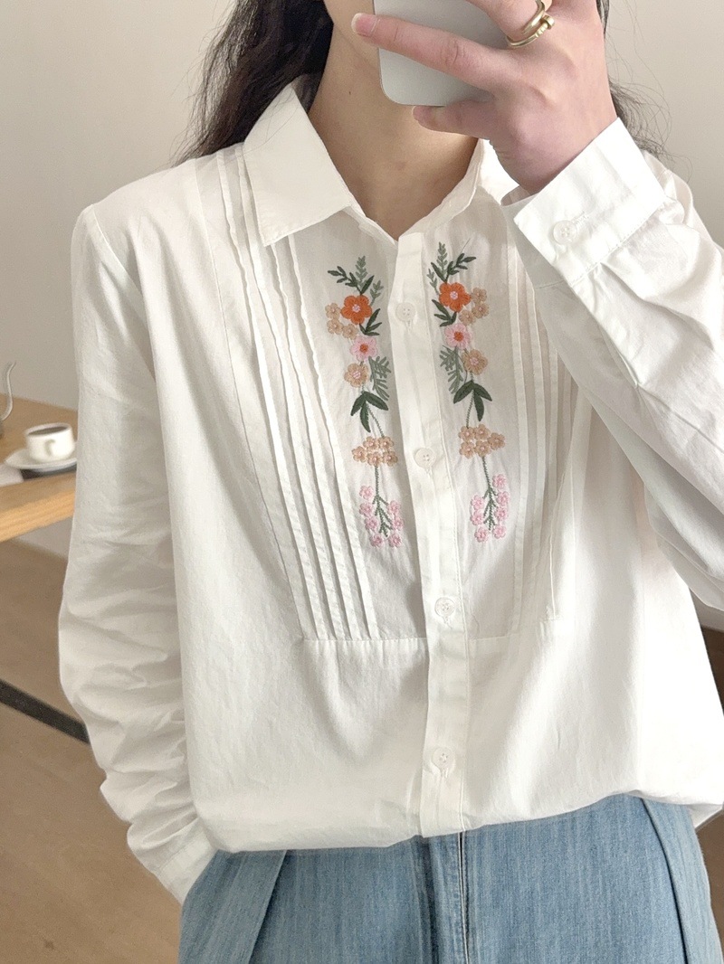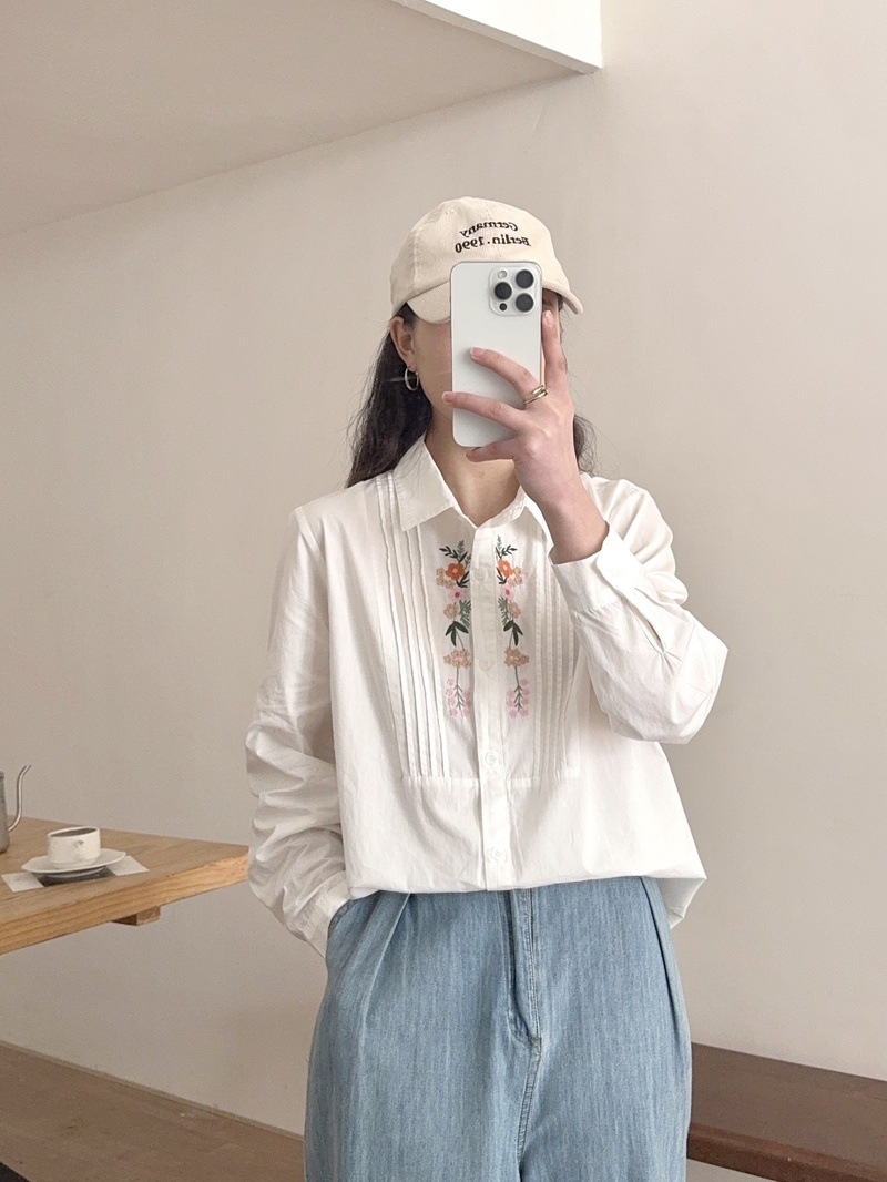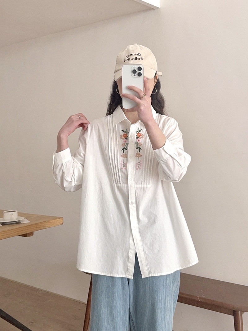 한국 스타일 새로운 자수 꽃 주름 느슨한 여성 긴 소매 셔츠 카디건 탑 도매 트렌디스토어 가기