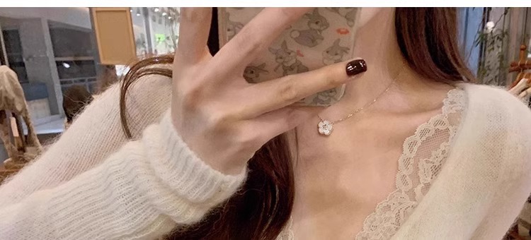 샤넬 스타일 레이스 V 넥 니트 베이스 셔츠 여성의 가을과 겨울 순수 슬림 핏 스웨터 독특한 슈퍼 니스 이너 탑