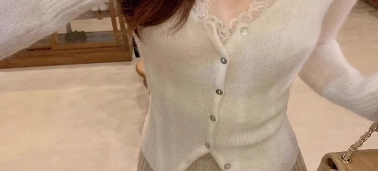샤넬 스타일 레이스 V 넥 니트 베이스 셔츠 여성의 가을과 겨울 순수 슬림 핏 스웨터 독특한 슈퍼 니스 이너 탑스토어 가기