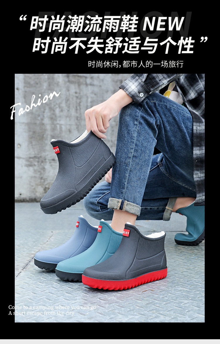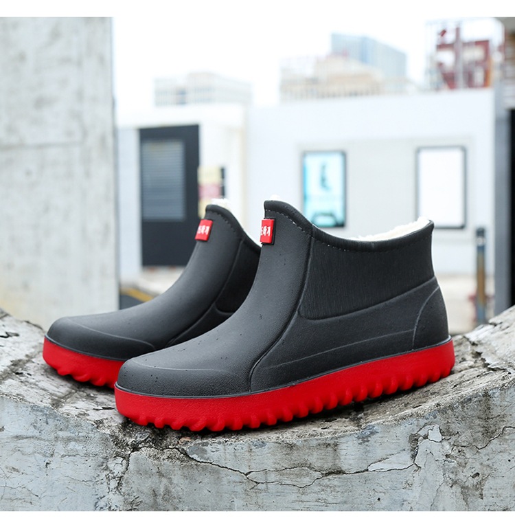 고정 벨벳 남성 비 부츠 미드 튜브 워터 슈즈 미끄럼 방지 레인 부츠 방수 따뜻한 낚시 신발 셰프 슈즈 해외 크로스