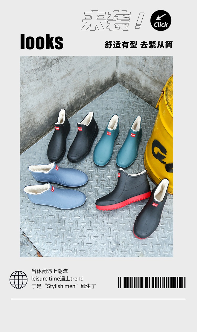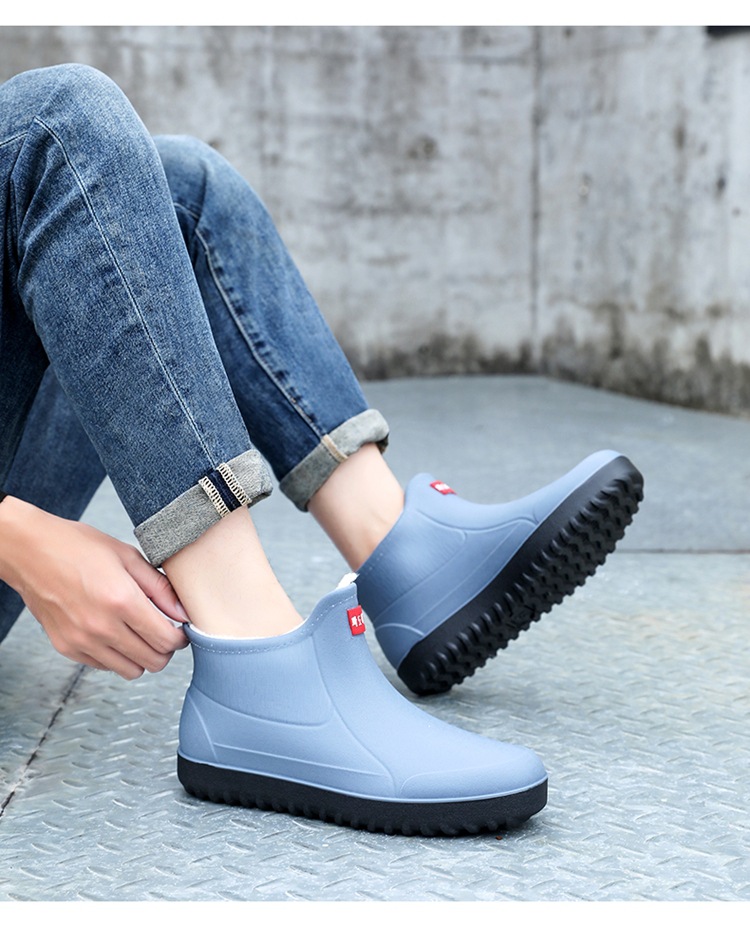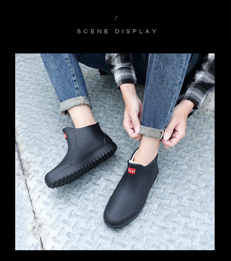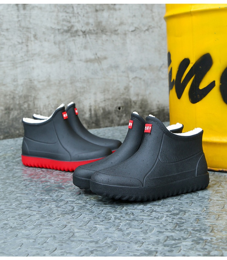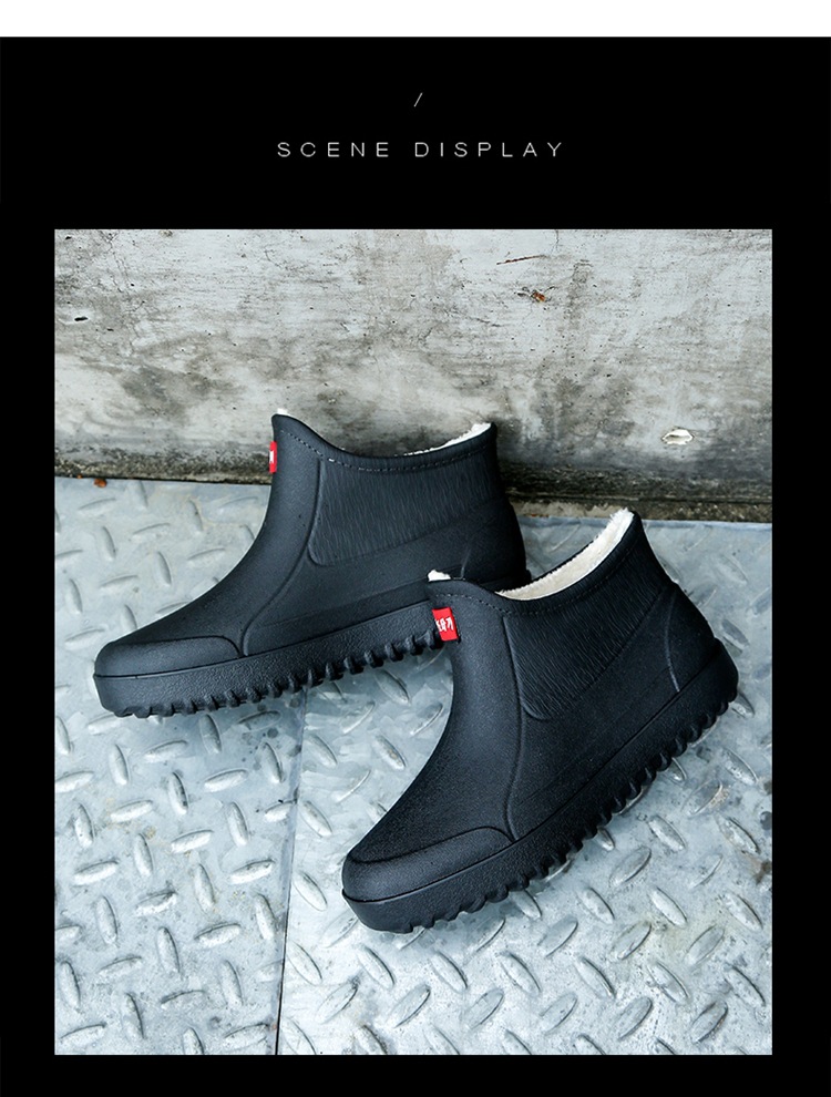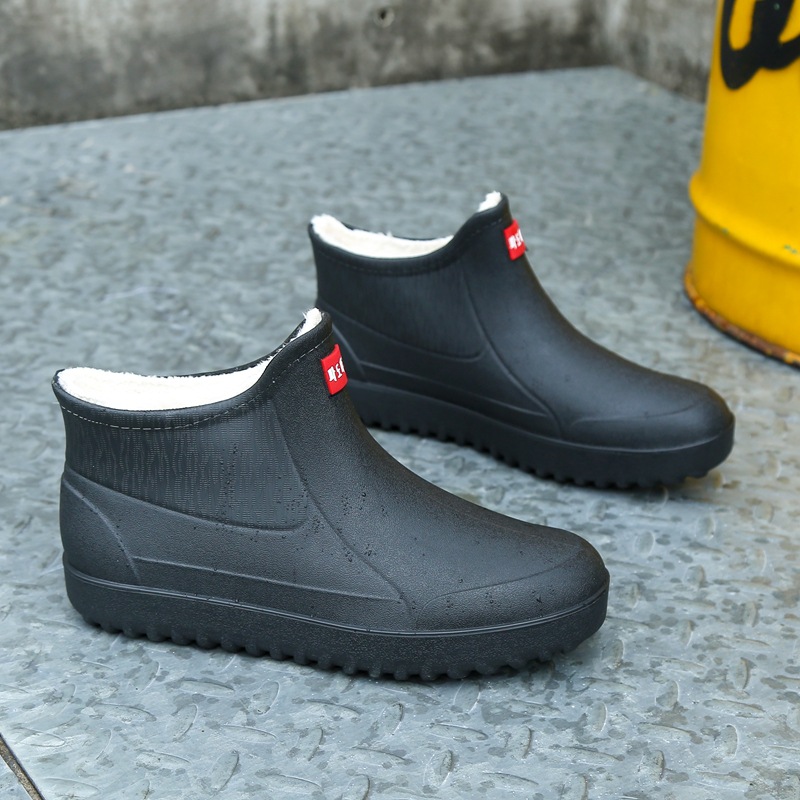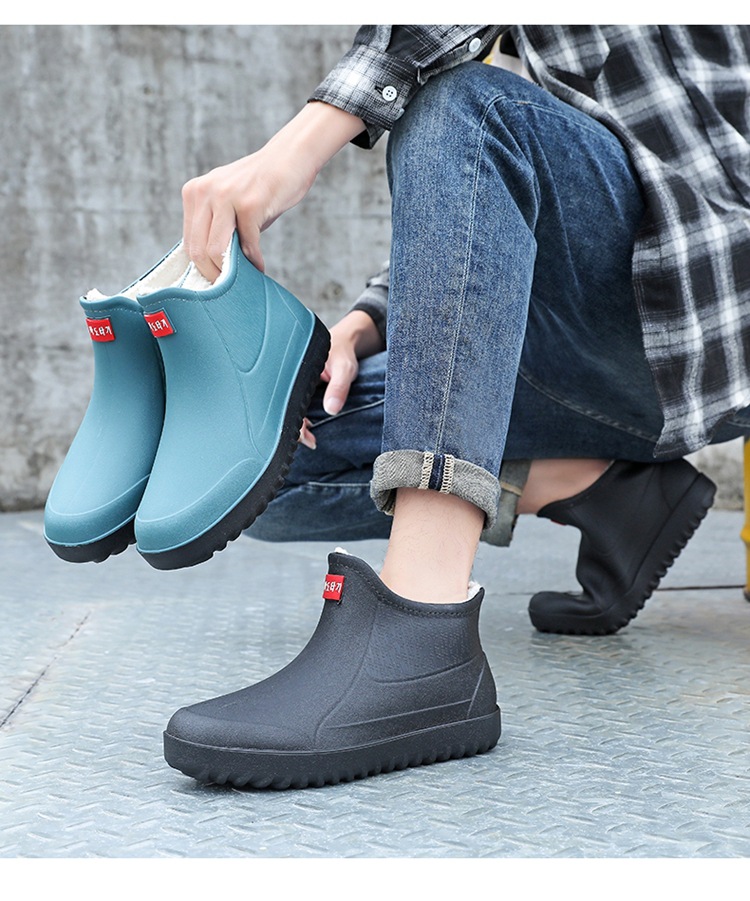 고정 벨벳 남성 비 부츠 미드 튜브 워터 슈즈 미끄럼 방지 레인 부츠 방수 따뜻한 낚시 신발 셰프 슈즈 해외 크로스스토어 가기