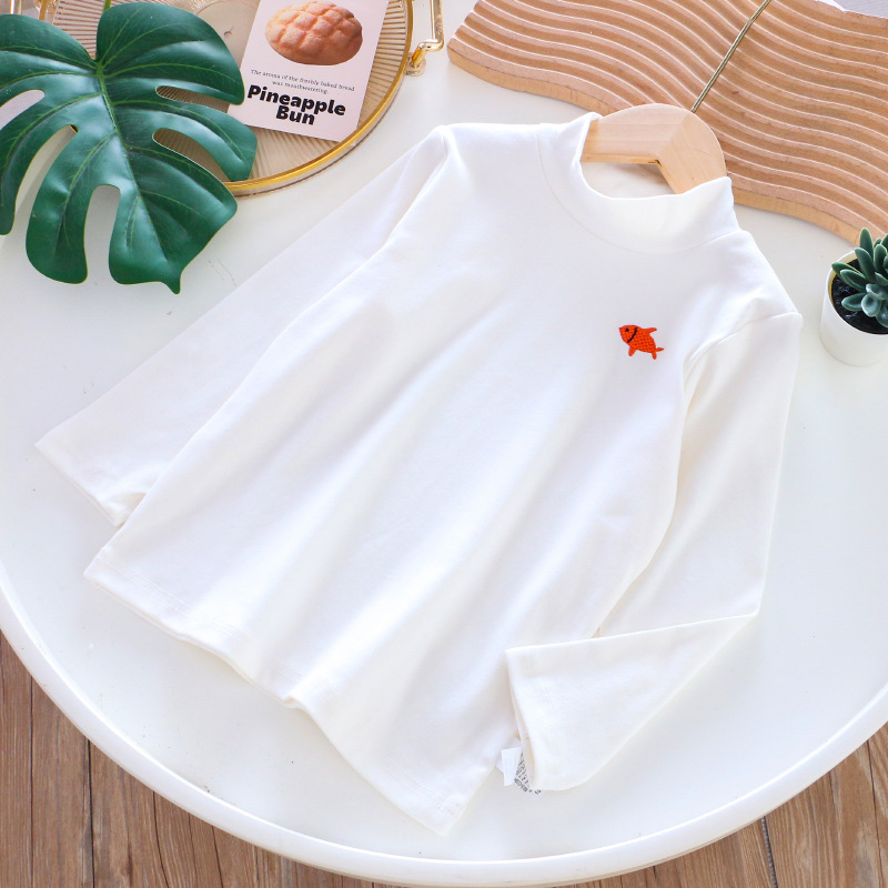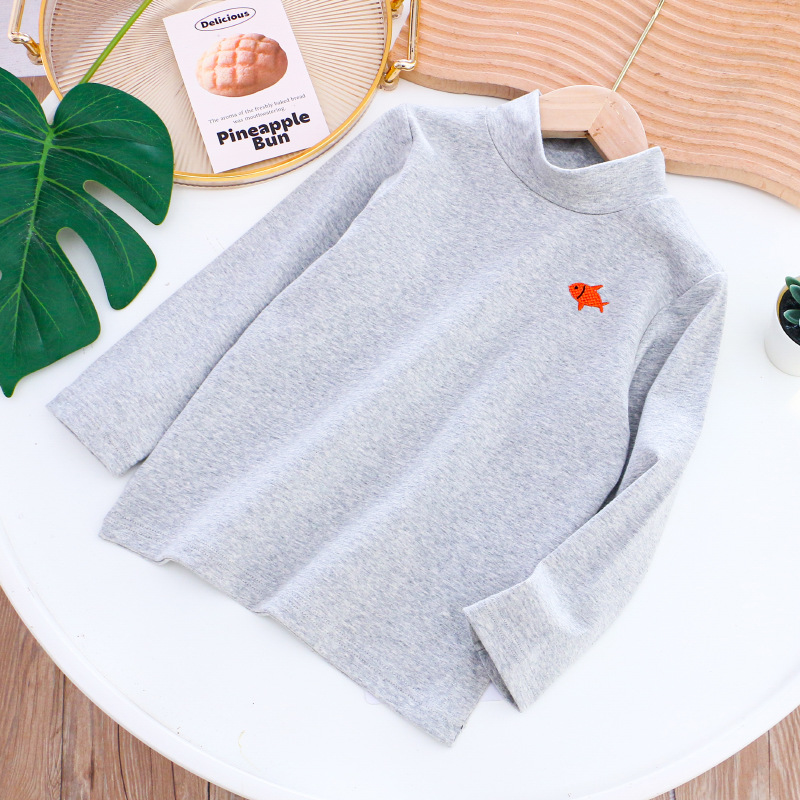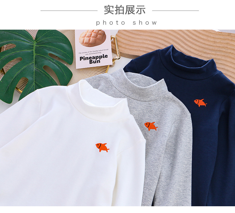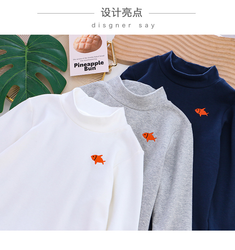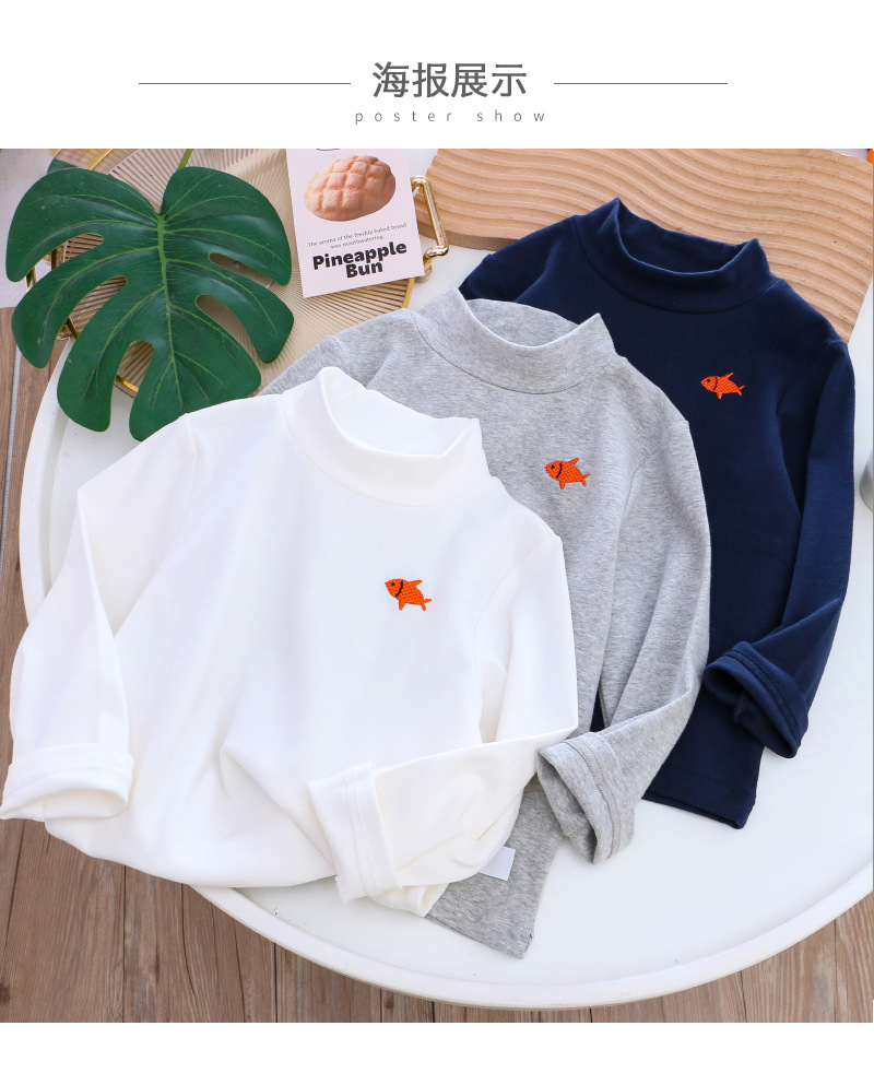 2025 새로운 아동복 봄 및 가을 착용 유니섹스베이스 셔츠 어린이 티셔츠 절반 높이 칼라 미들 칼라 이너 탑