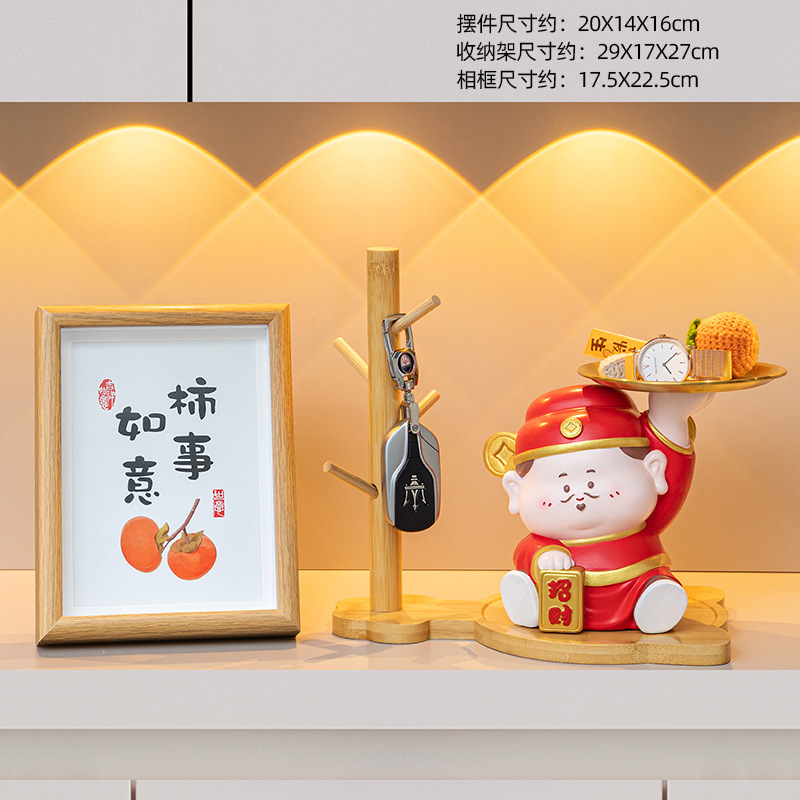 • 부의 신 트레이 장식 + 고양이 발톱 나뭇가지 + 감 행운 액자