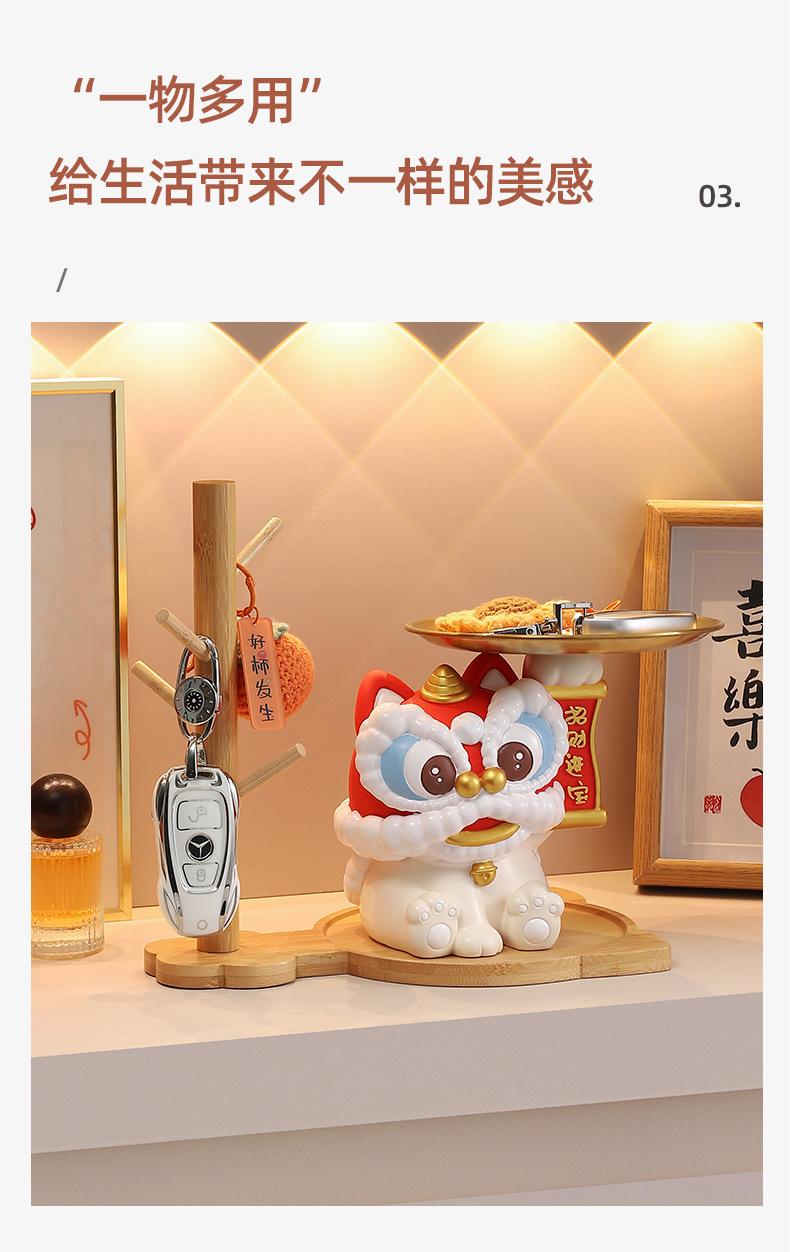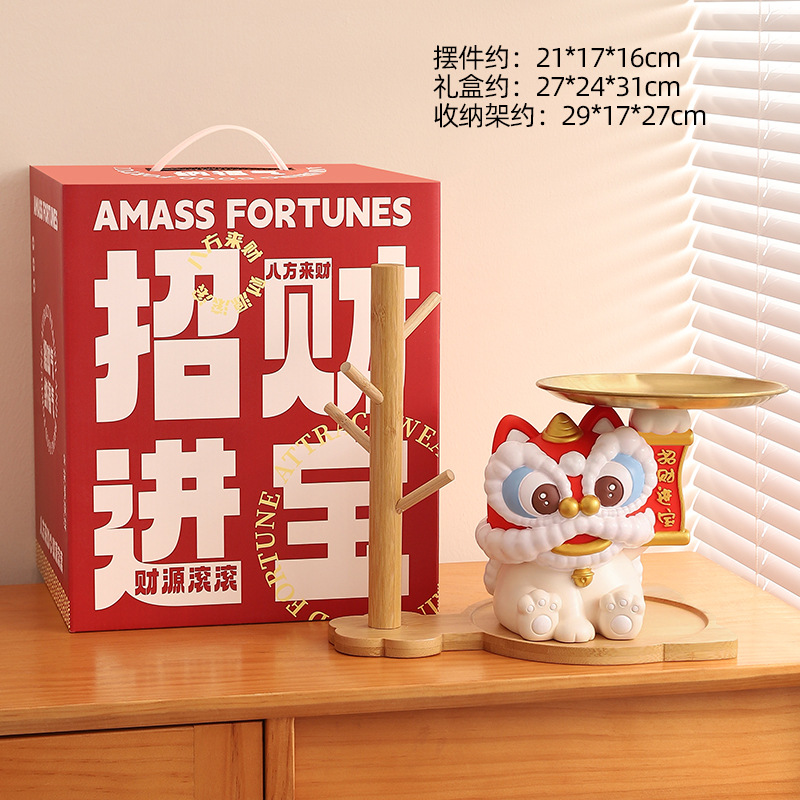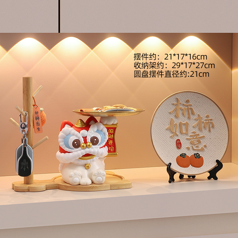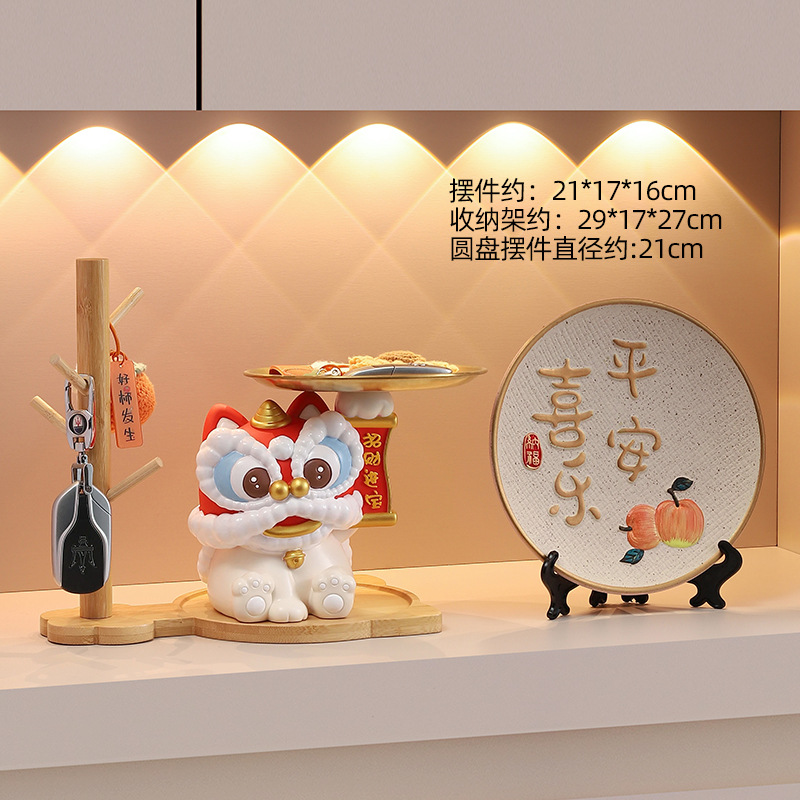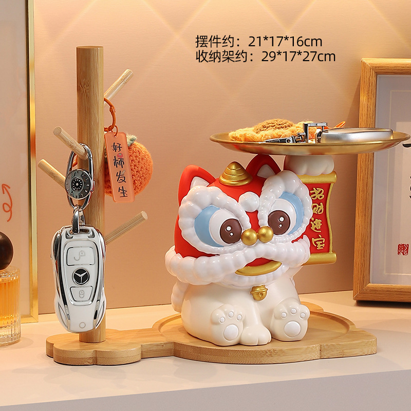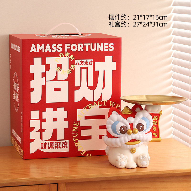 蛇年新款醒狮托盘树脂摆件钥匙玄关收纳财源广进桌面装饰工艺礼品