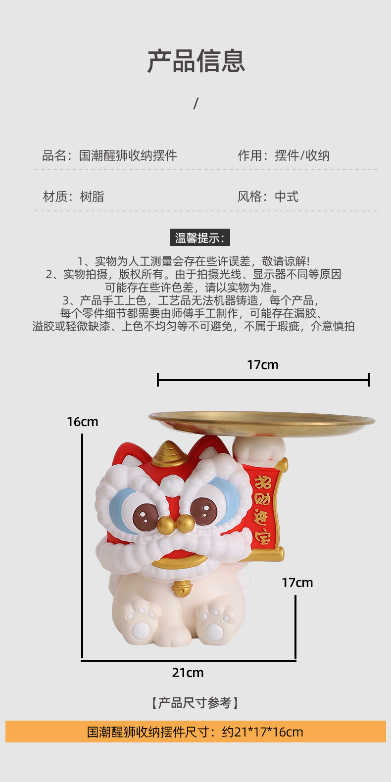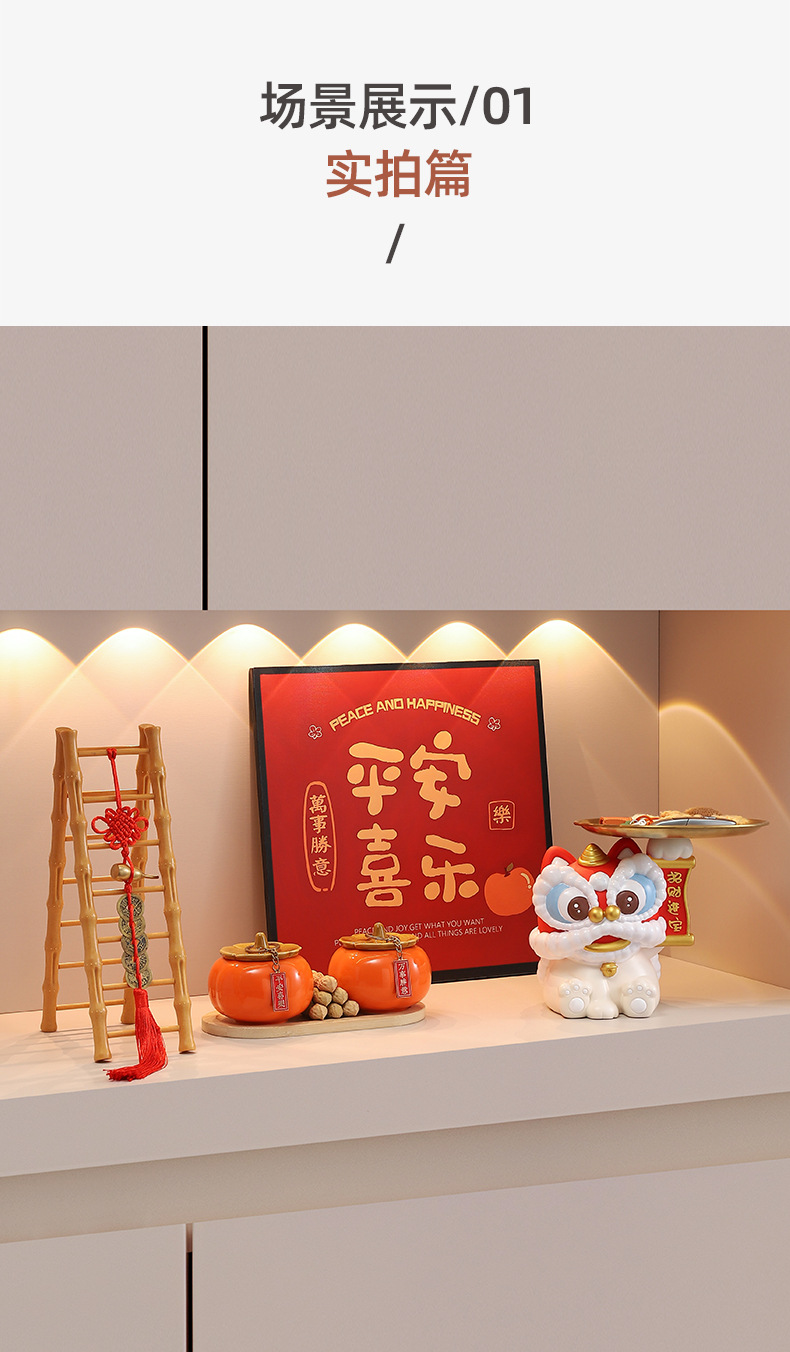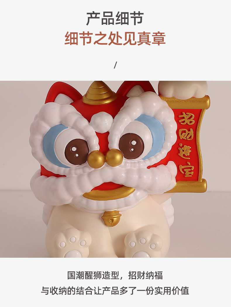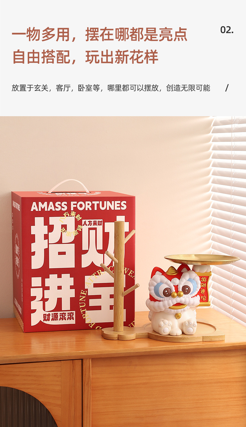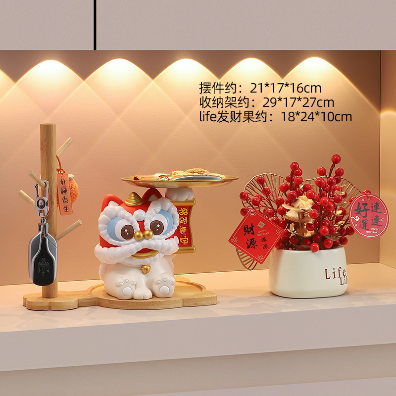 蛇年新款醒狮托盘树脂摆件钥匙玄关收纳财源广进桌面装饰工艺礼品