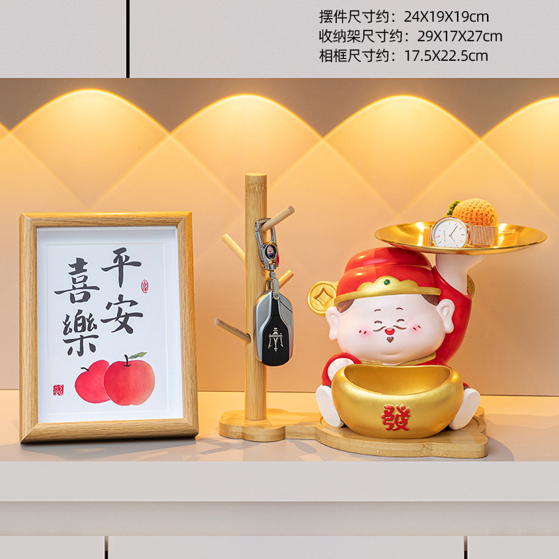 • 부의 신 트레이 장식 + 고양이 발톱 나뭇가지 + 평화와 기쁨 사진 프레임