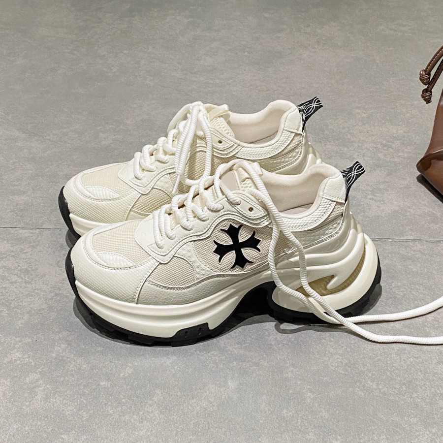 인터넷 유명인과 같은 스타일의 7.5cm 키높이~십자형 꽃무늬 두꺼운 밑창 캐주얼 운동화 여성용 런닝화
