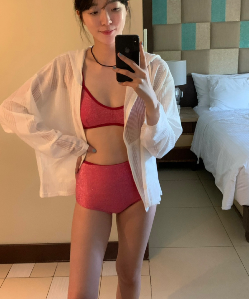 2025 새로운 소녀의 간단한 진주 빛 실버 실크 고급 분할 하이 웨이스트 벨리 커버 슬리밍 수영복 여성용 수영복