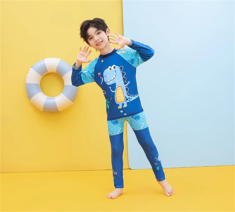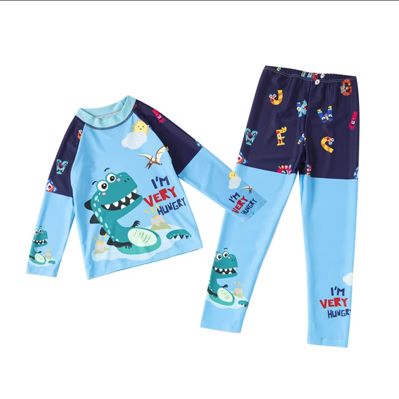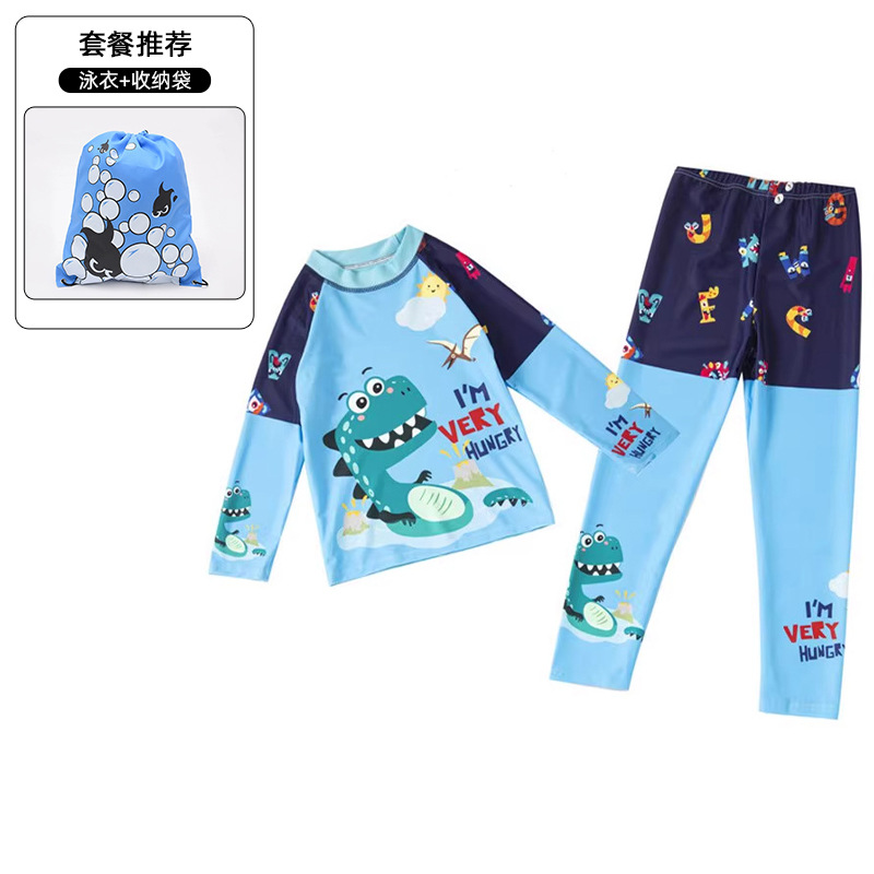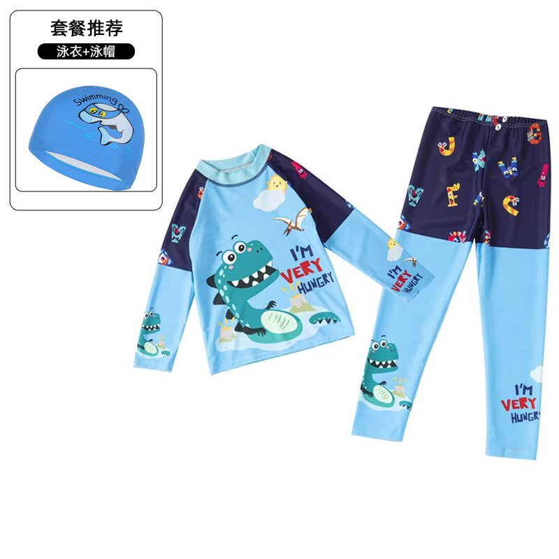 2025 새로운 어린이 분할 수영 소년 중 및 대형 어린이 긴 소매 바지 온천 태양 보호 레저 서핑 수영복