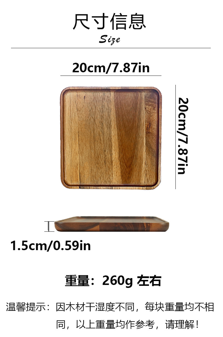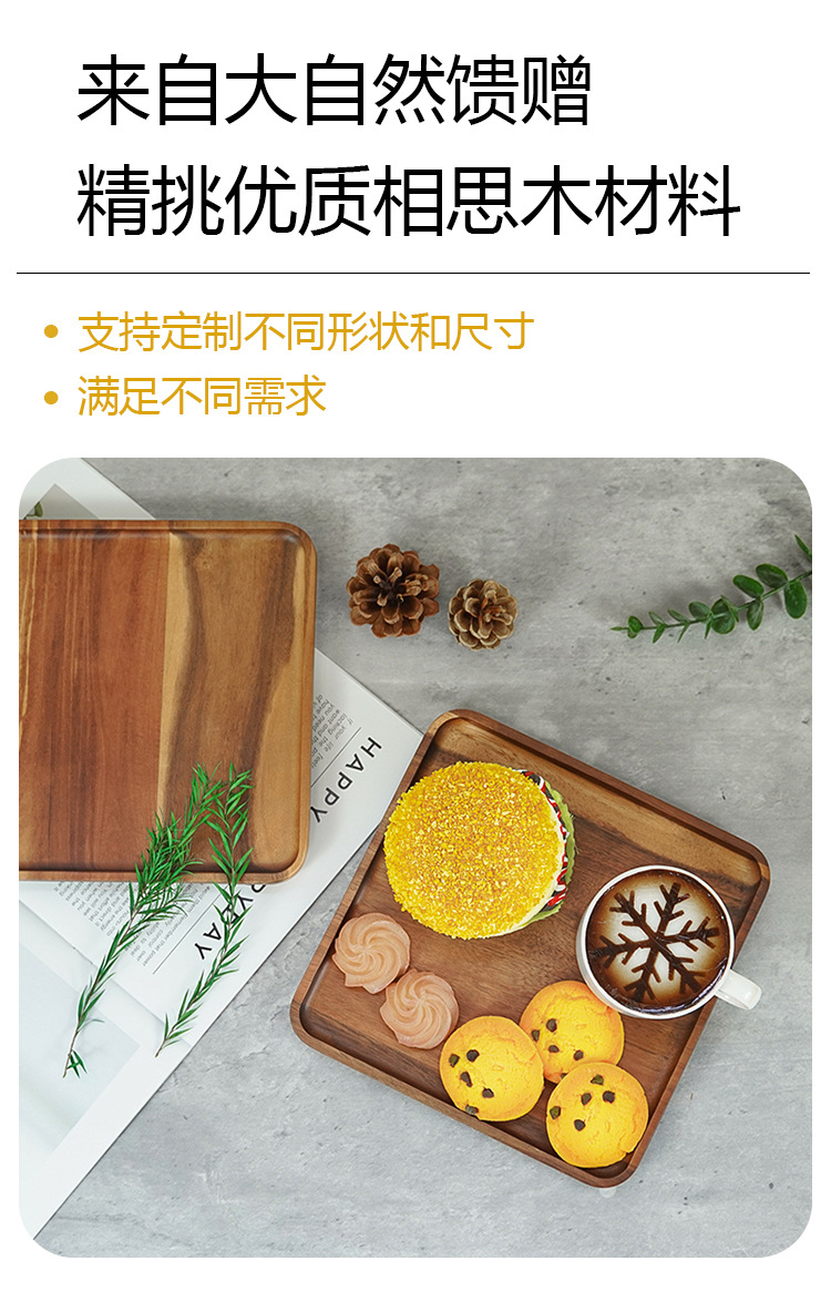 솔리드 우드 스퀘어 과일 플레이트 아카시아 나무 트레이 크리에이티브 호텔 스시 디저트 나무 플레이트 일본 조식 플레이트