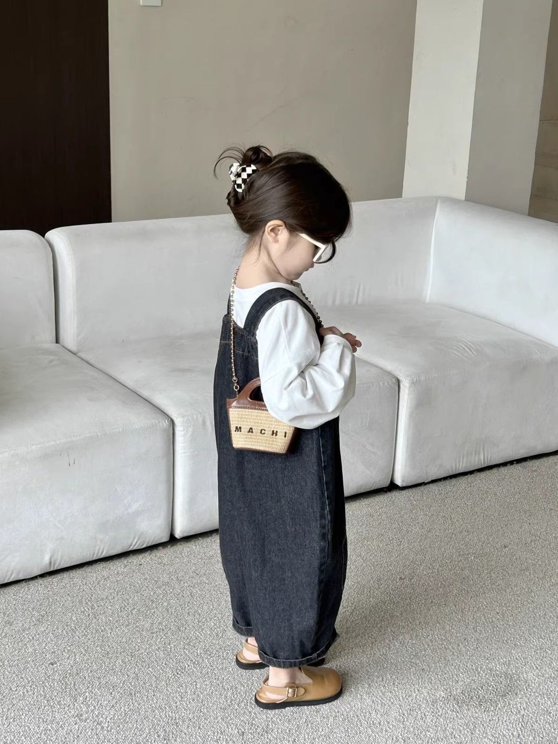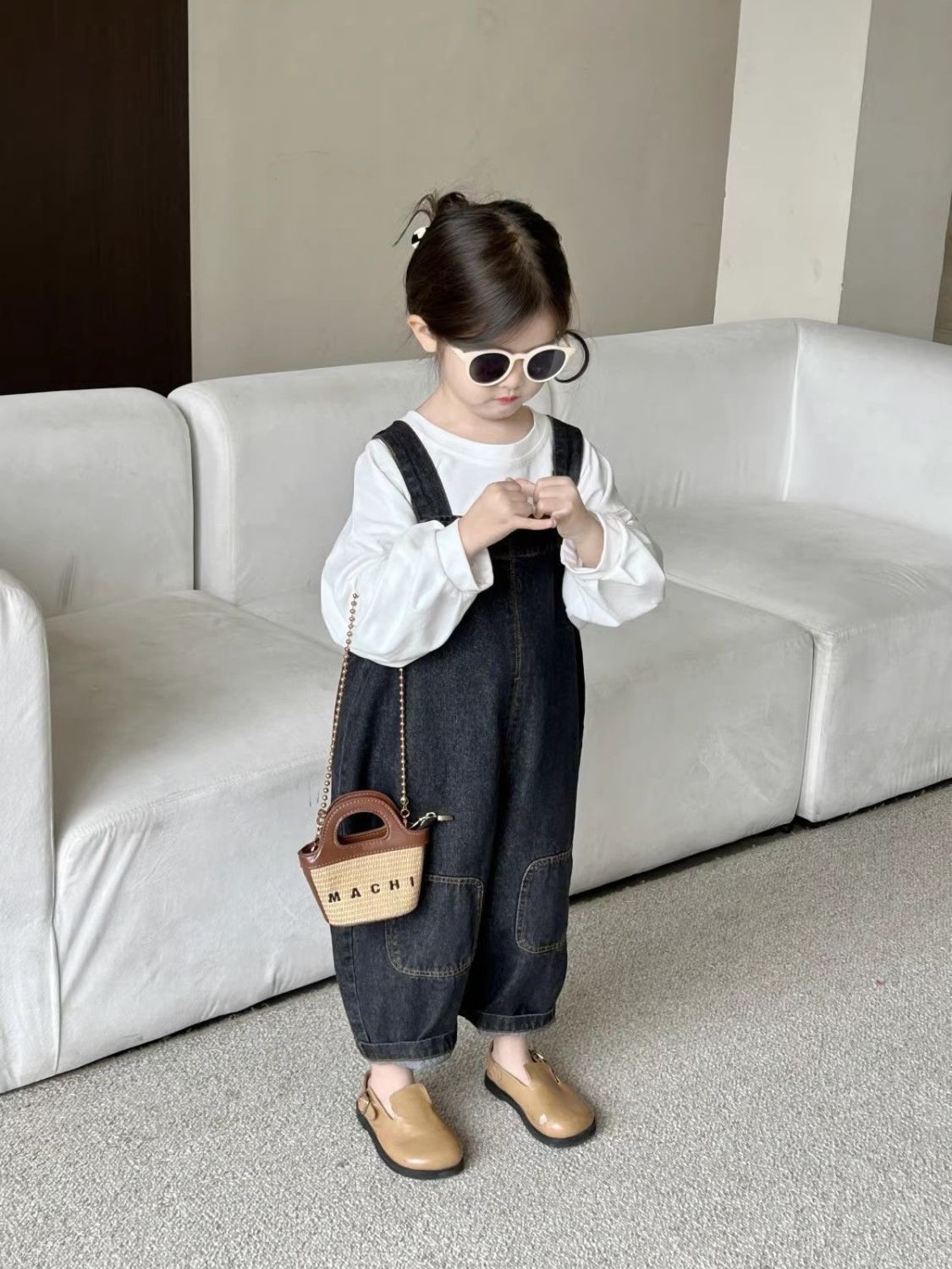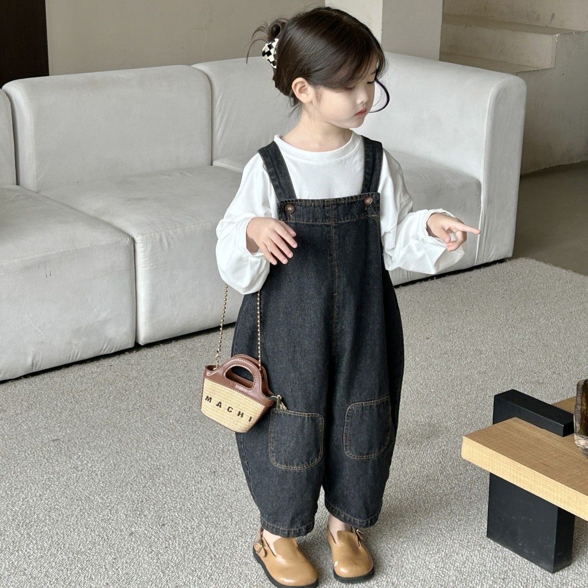 2025 봄 소녀 복고풍 중립 향수 워시 청바지 소년과 소녀 베이비 오버올 아동 바지 유행스토어 가기