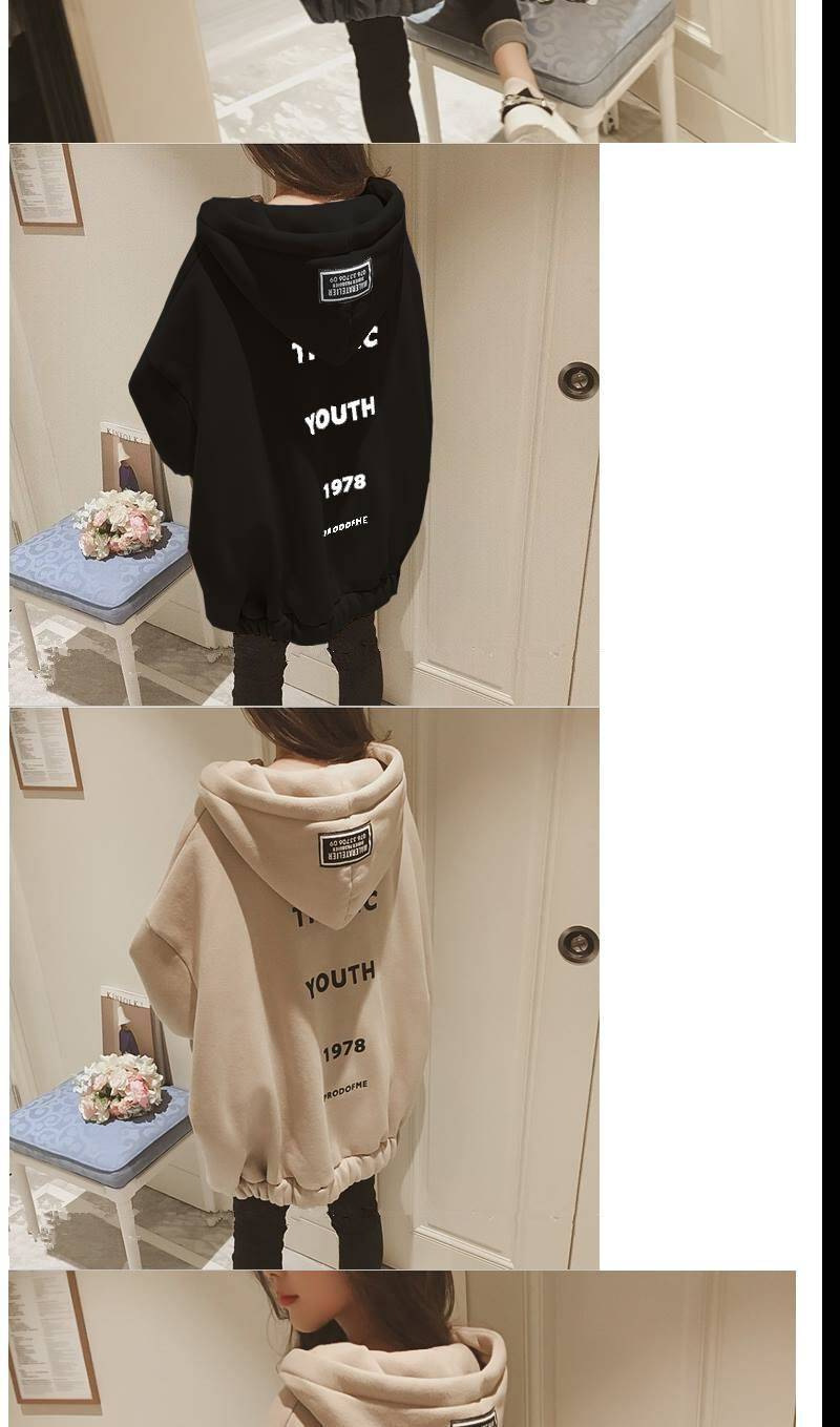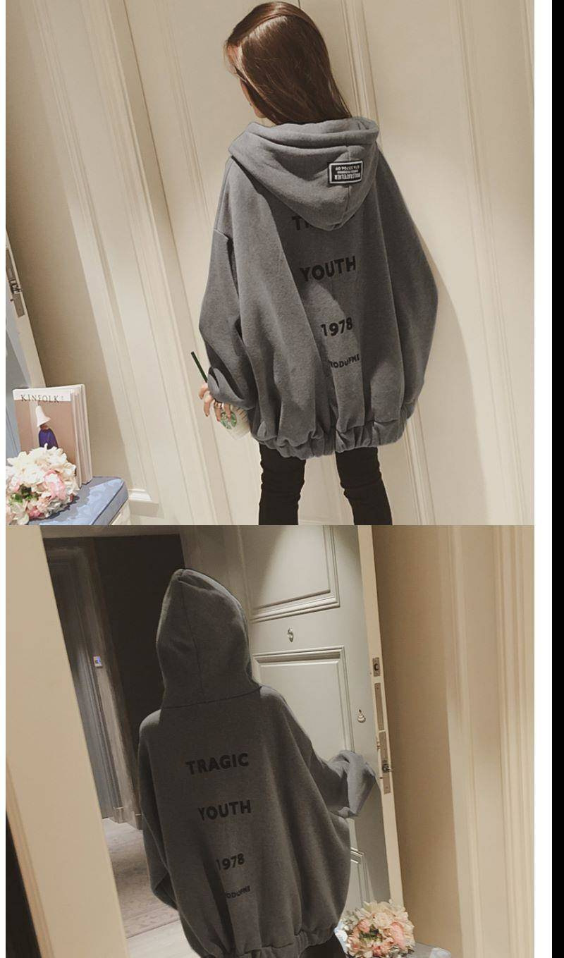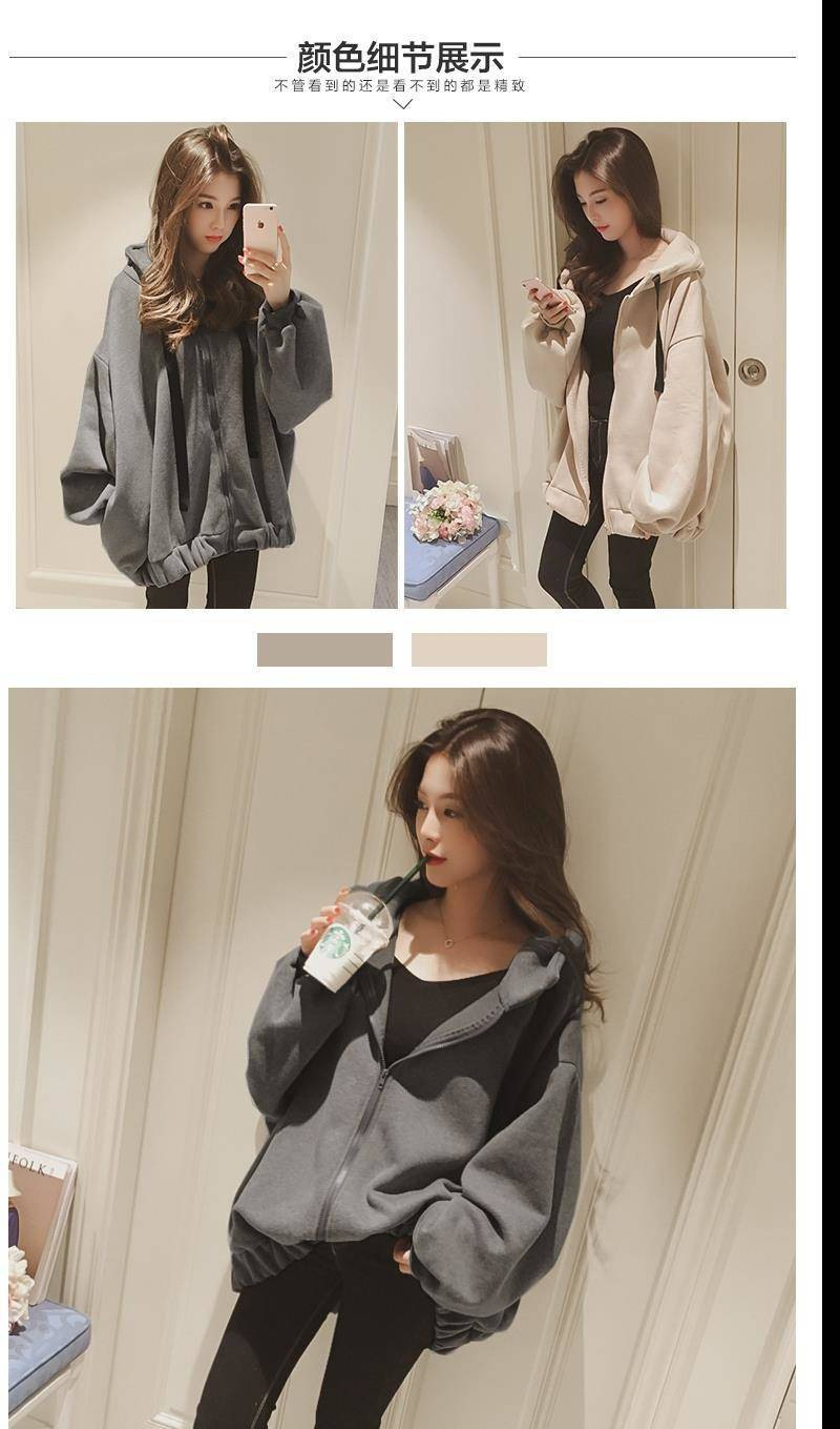 기모 두꺼운 지퍼 여성용 스웨트 셔츠 느슨한 한국 스타일 BF 게으른 스타일 유행 인쇄 가을과 겨울 후드 캐주얼 자켓스토어 가기