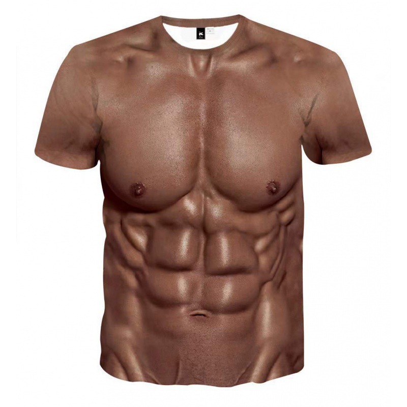 소원 폭발 섹시한 3d 근육 남성 반팔 Kuso 창조적 인 피트니스 탄성 짧은 티셔츠 디지털 프린트 티셔츠 재고스토어 가기