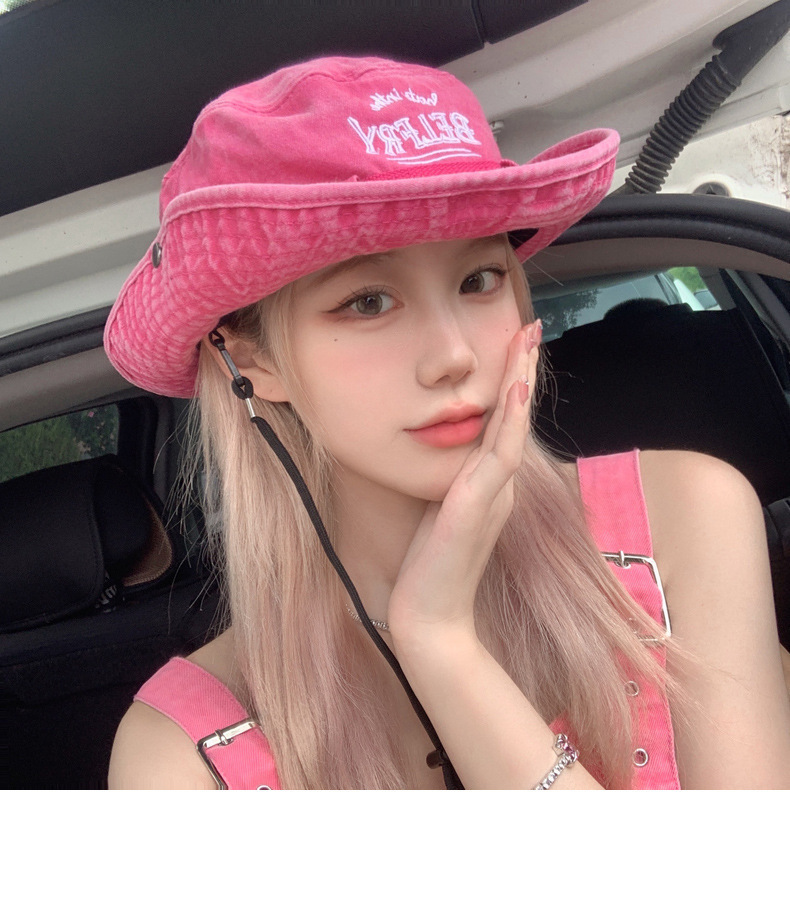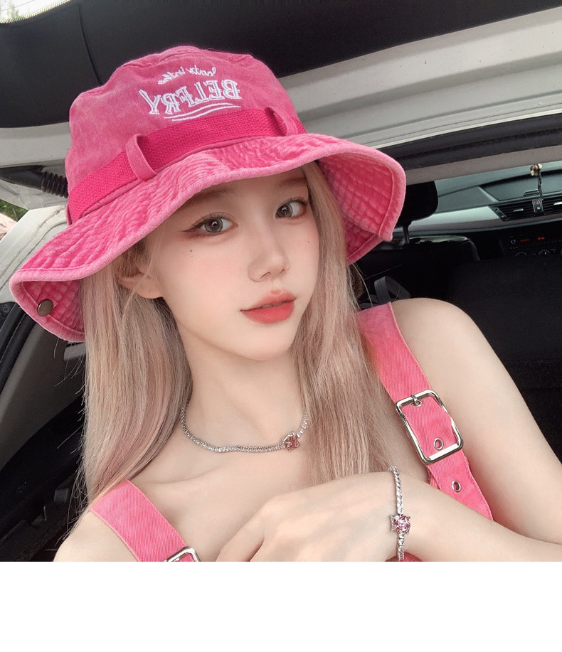 일본식 Ins 소프트 탑 로즈 핑크 수놓은 어부 모자 여성의 여름 햇빛 햇살 모자 야외 캠핑 등산 모자
