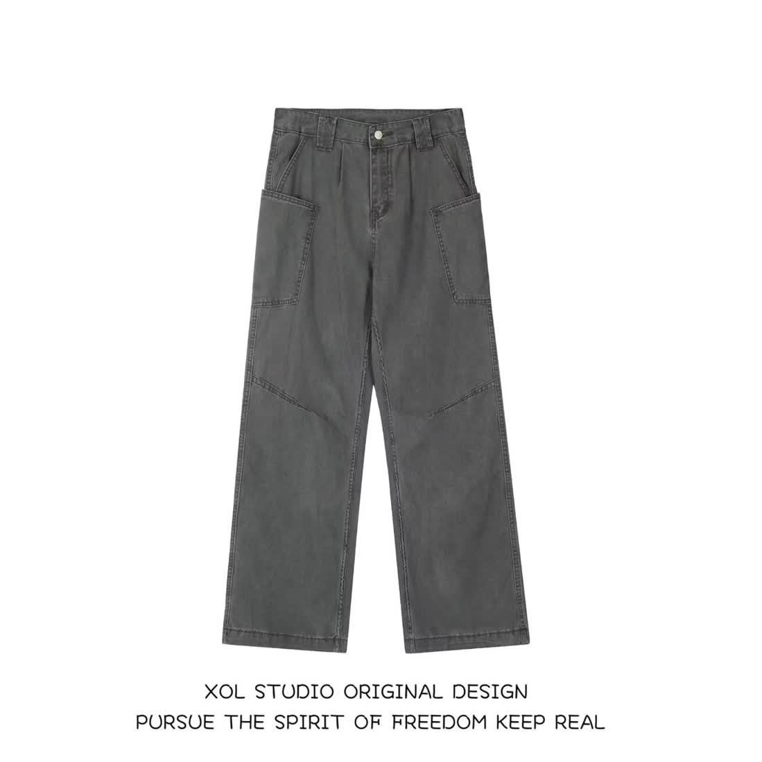 남성과 여성을 위한 아메리칸 하이 스트리트 그레이 워크 청바지, 루즈한 멀티 포켓 캐주얼 다용도 스트레이트 팬츠, 새로운 하이 스트리트스토어 가기