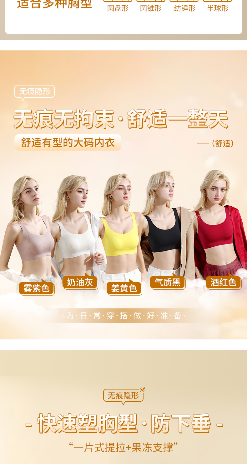 여성용 큰 가슴을 위한 흔적 없는 와이어 프리 푸쉬업 얇은 처짐 방지 브라, 측면 가슴 축소 기능, 뚱뚱한 여성을 위한 수면 및 스포츠 브라