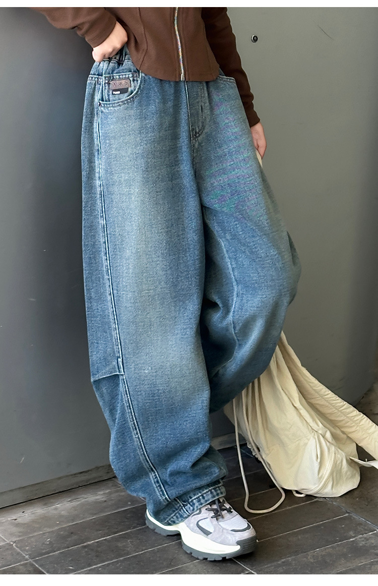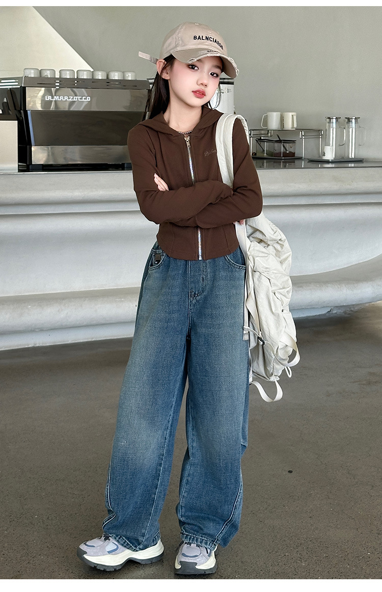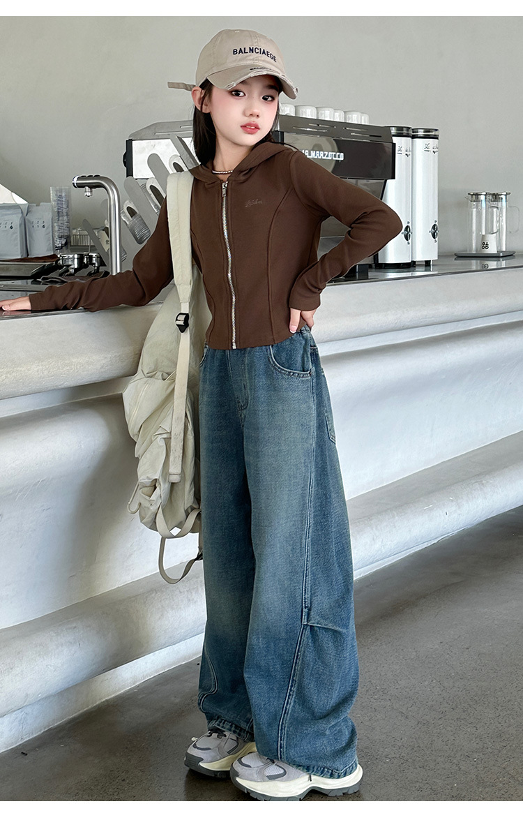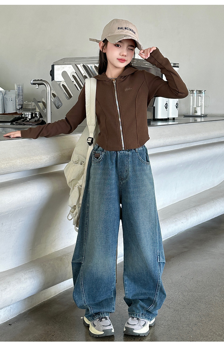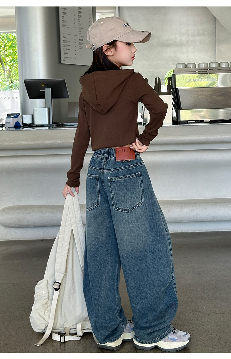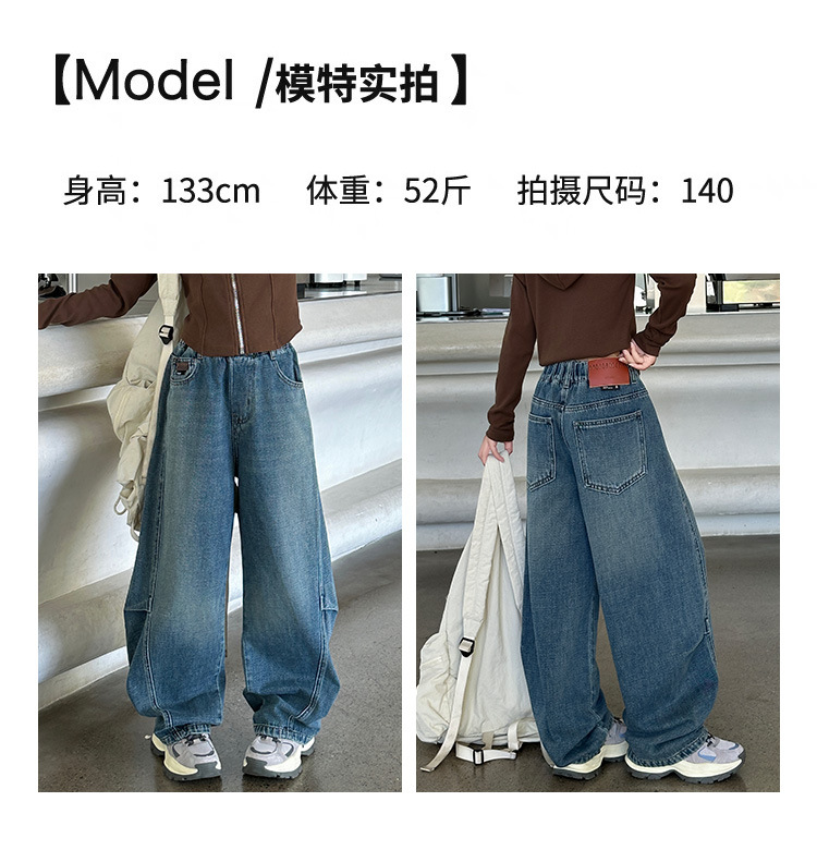 소녀 마체 테 청바지 2025 년 봄과 가을 새로운 어린이 패셔너블 루즈 중학교 학생 캐주얼 와이드 레그 바나나 바지스토어 가기