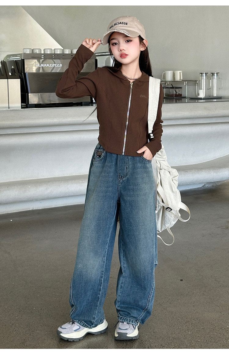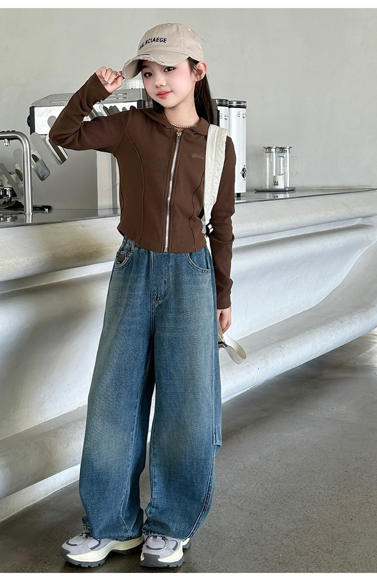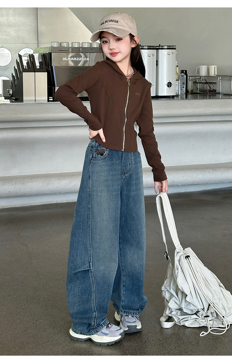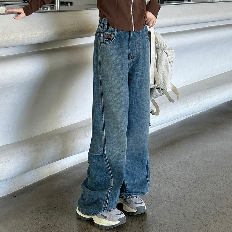 소녀 마체 테 청바지 2025 년 봄과 가을 새로운 어린이 패셔너블 루즈 중학교 학생 캐주얼 와이드 레그 바나나 바지