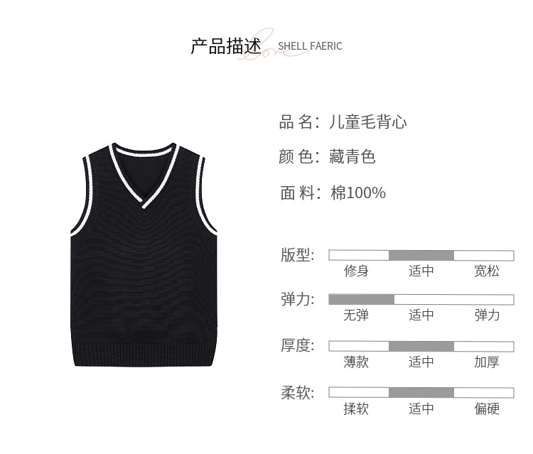 초등 및 중학생 네이비 울 조끼 영국 대학 스타일 학교 유니폼 클래스 흰색 가장자리 V-Neck 어린이 니트 조끼 면화스토어 가기