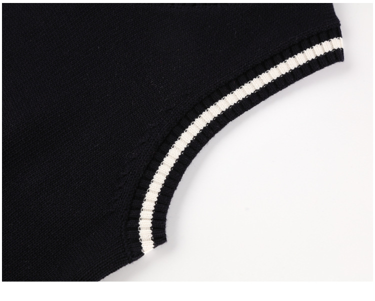 초등 및 중학생 네이비 울 조끼 영국 대학 스타일 학교 유니폼 클래스 흰색 가장자리 V-Neck 어린이 니트 조끼 면화