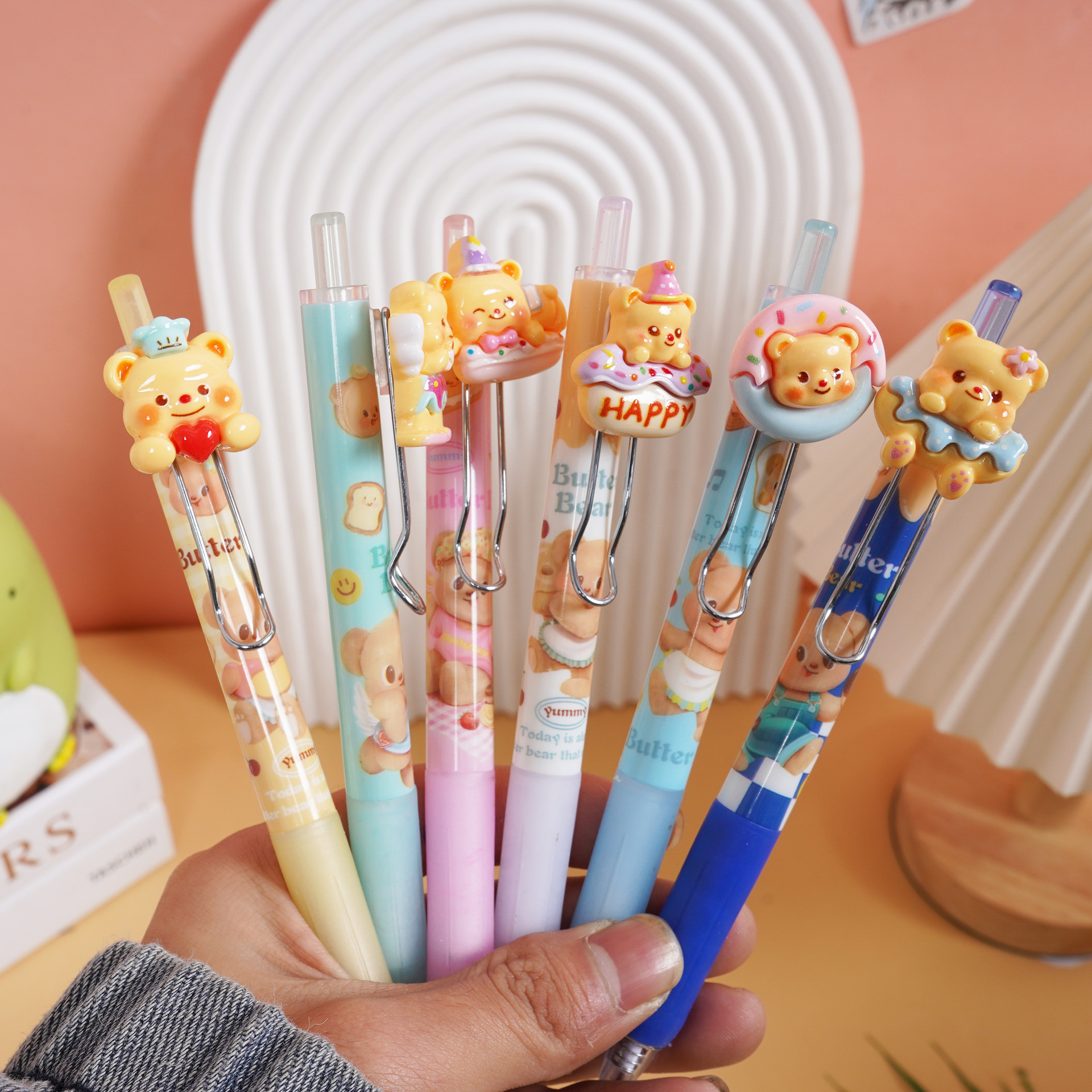 국경 8268 현금 버터 곰 스티커 펜 만화 귀여운 버터 베어 학생 프레스 젤 펜스토어 가기