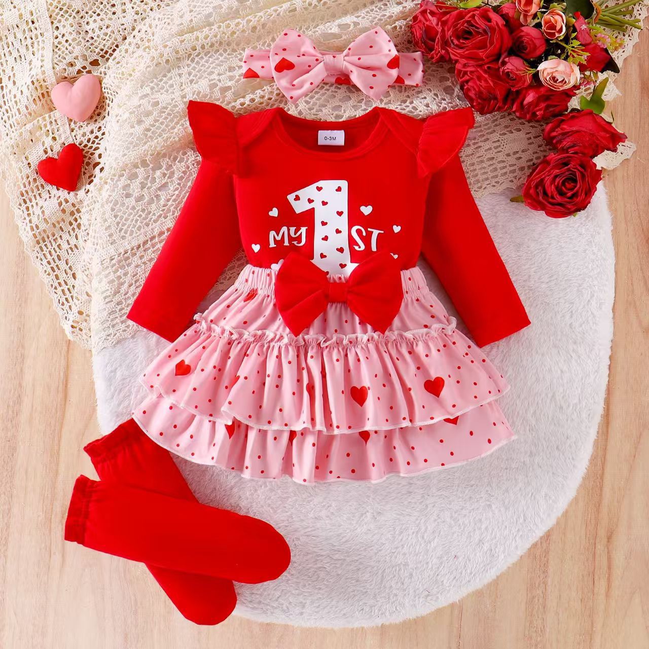 어린이 의류 소녀의 아기 귀여운 편지 인쇄 긴 소매 토끼 사랑 활 짧은