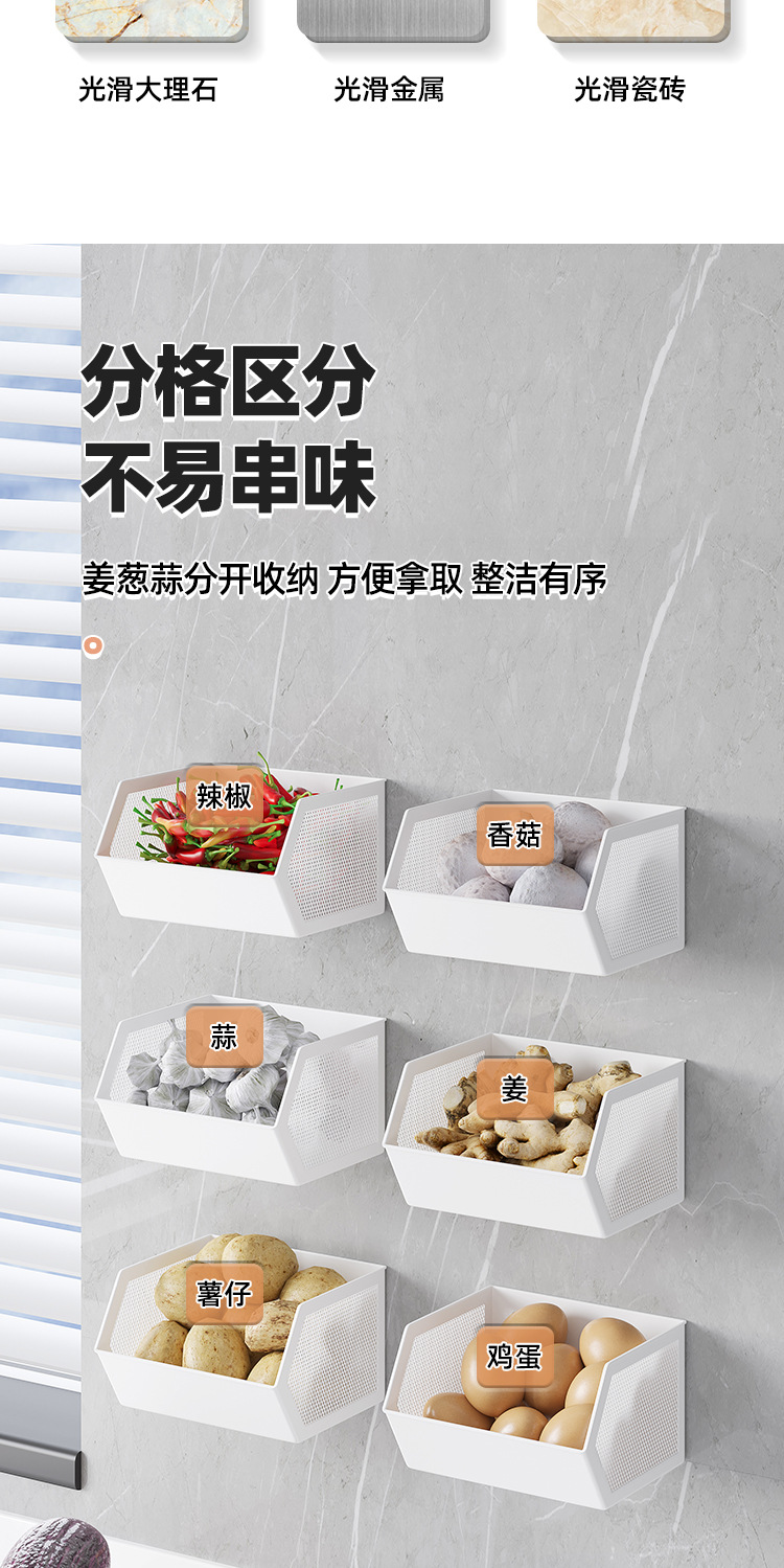 주방 스캘리 온, 생강 및 마늘 저장 매달린 바구니 저장 랙 벽걸이 메쉬 바구니 다기능 벽 조미료 과일 및 야채 바구니 상자 아티팩트스토어 가기