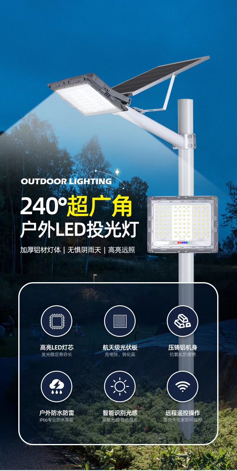 야외 새로운 별 태양 투광 조명 3 면 빛나는 번개 보호 슈퍼 밝은 안뜰 엔지니어링 방수 가로등