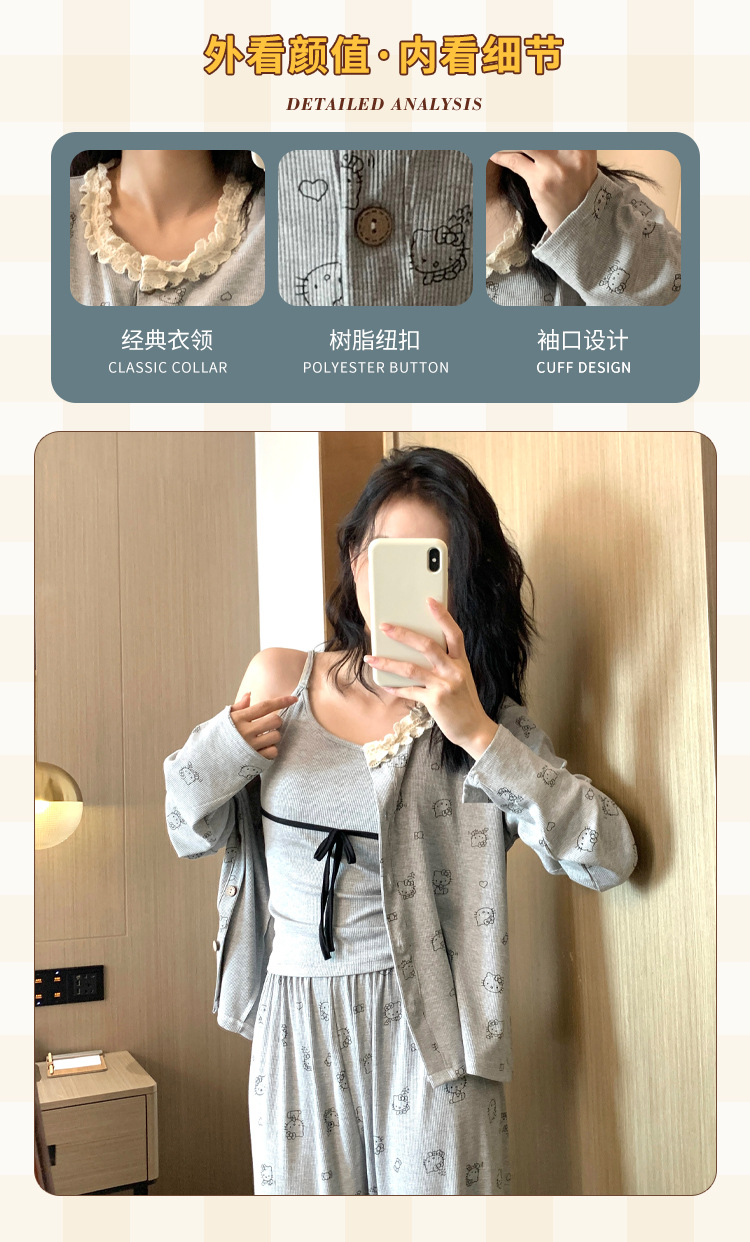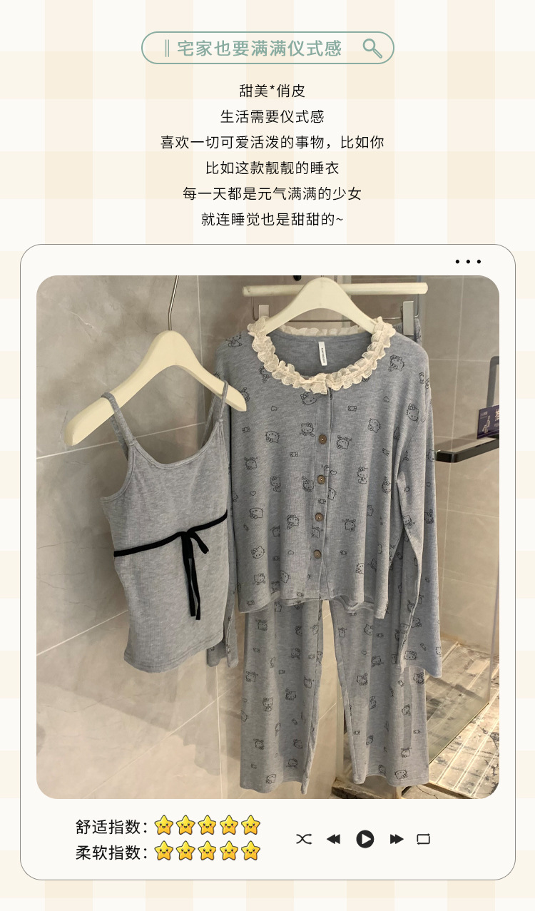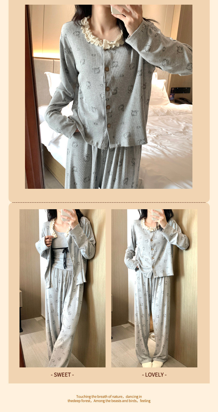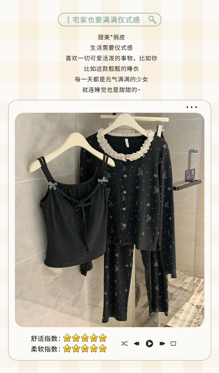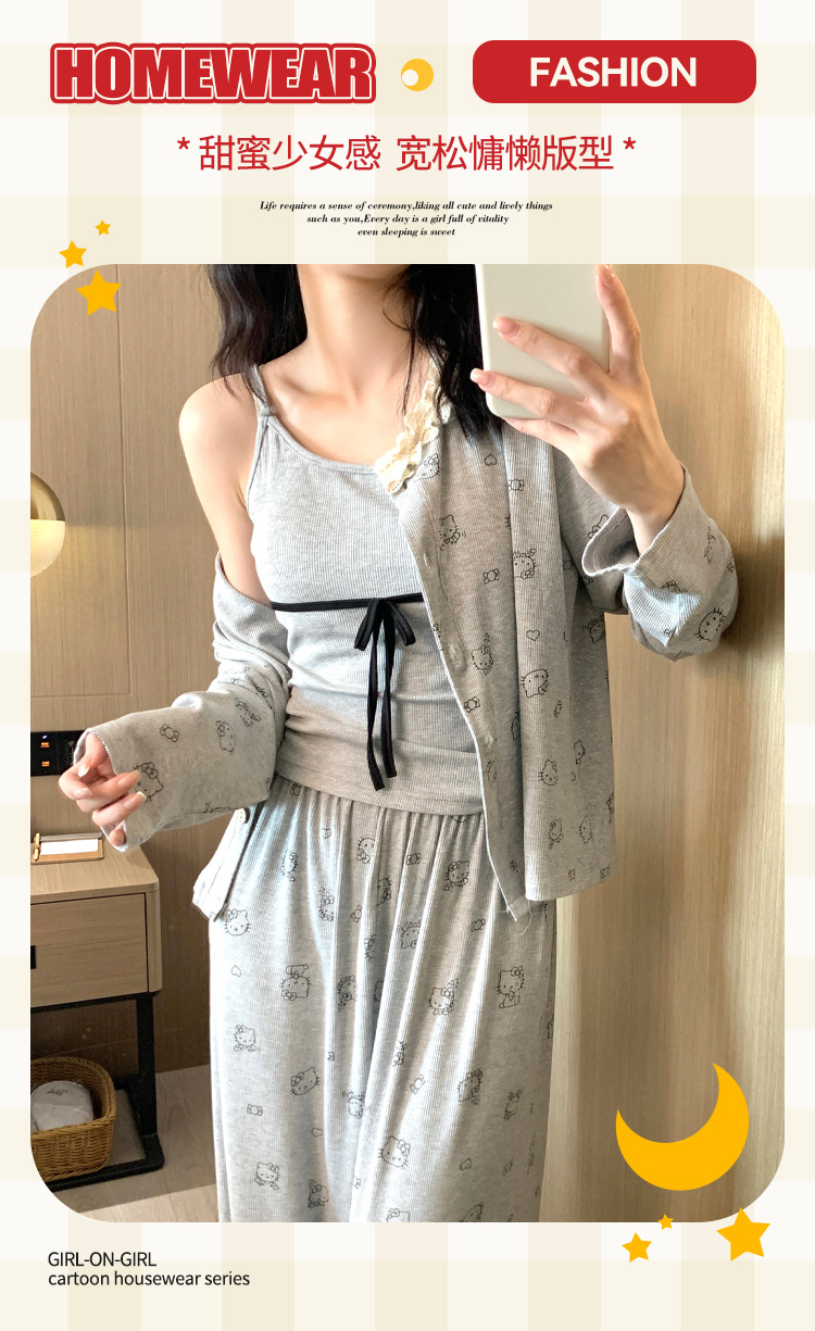 가슴 패드가 달린 게으른 스타일 모달 파자마 여성의 2025 봄과 가을 슬링 긴 소매 카디건 홈 옷 3 피스 세트스토어 가기