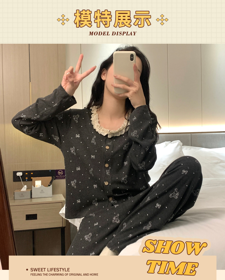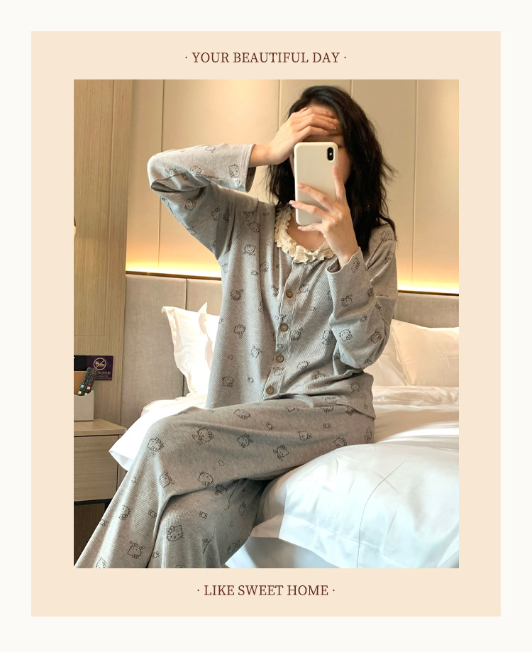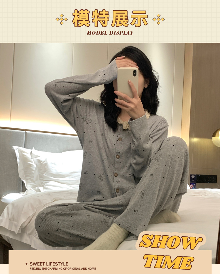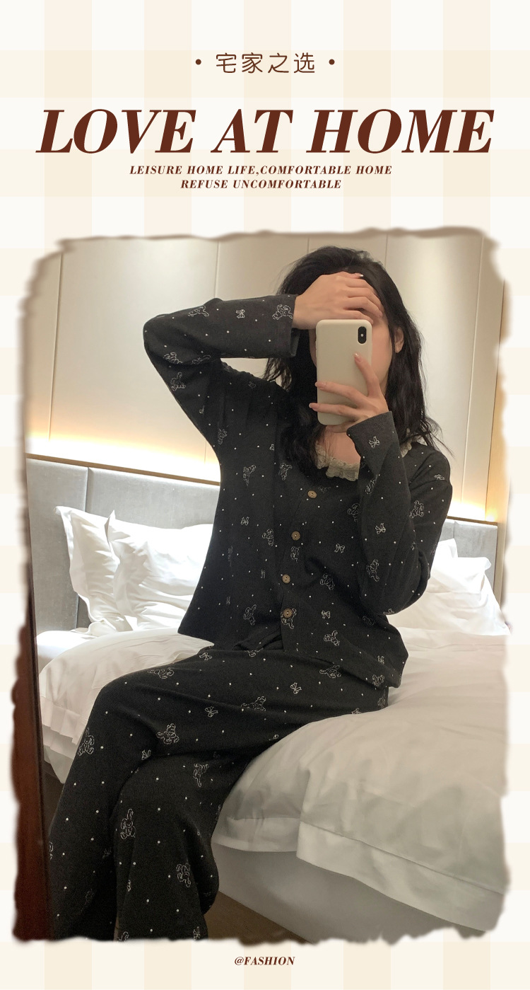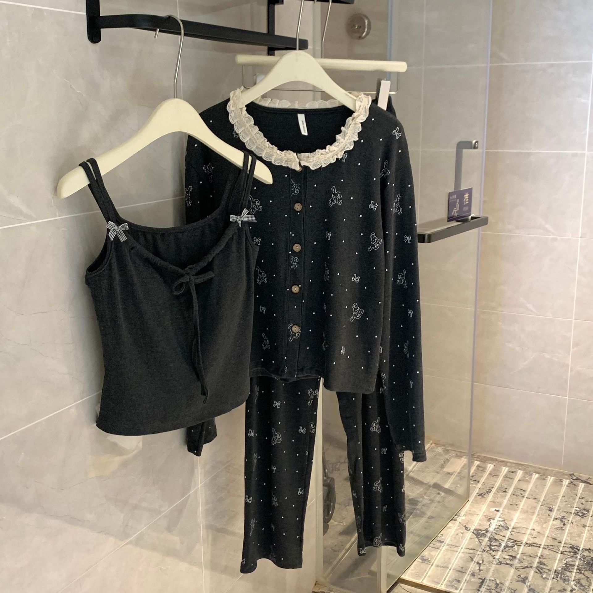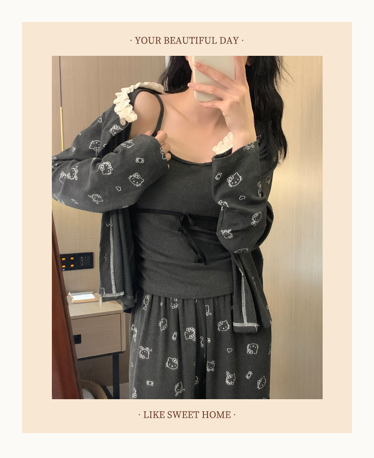 가슴 패드가 달린 게으른 스타일 모달 파자마 여성의 2025 봄과 가을 슬링 긴 소매 카디건 홈 옷 3 피스 세트스토어 가기