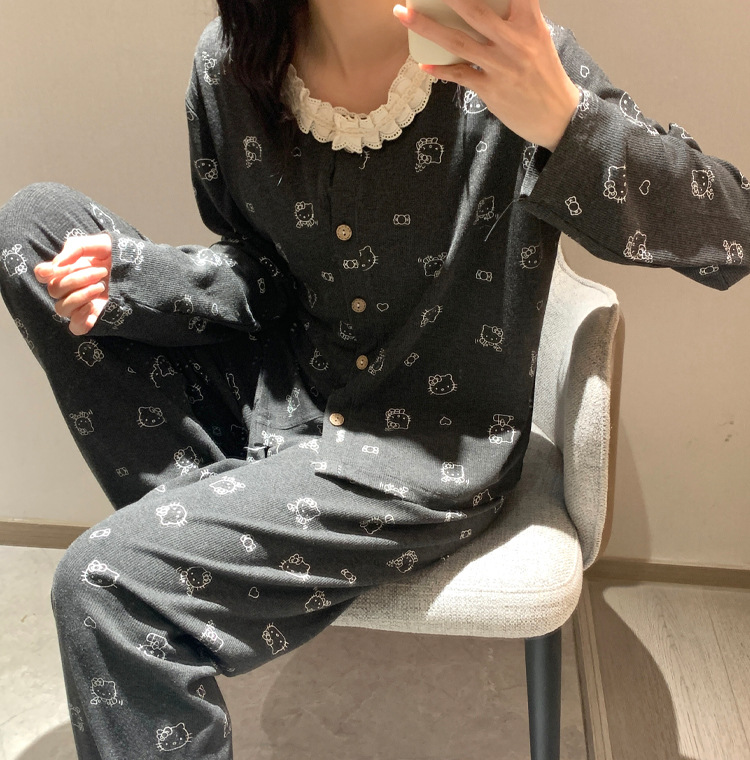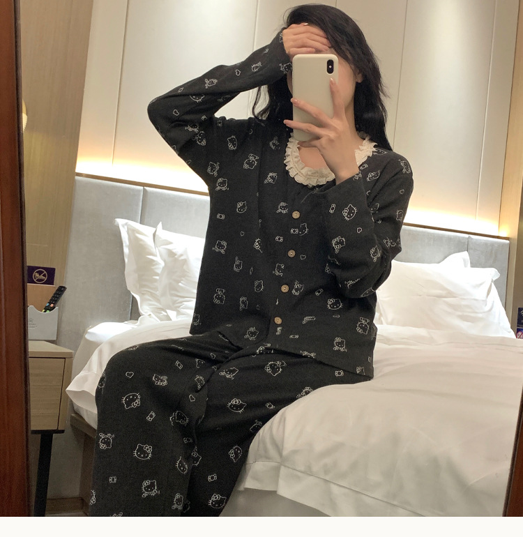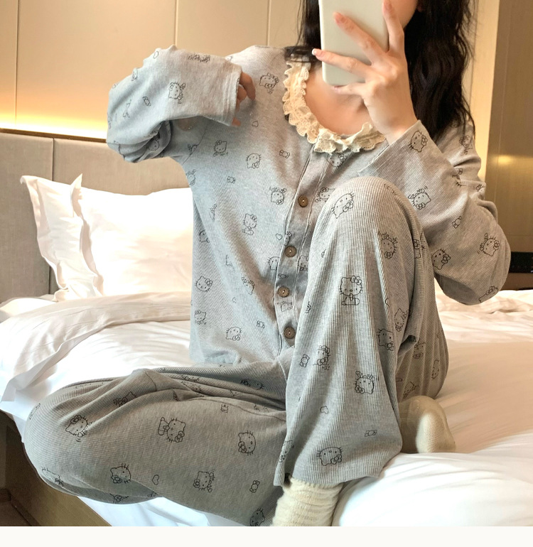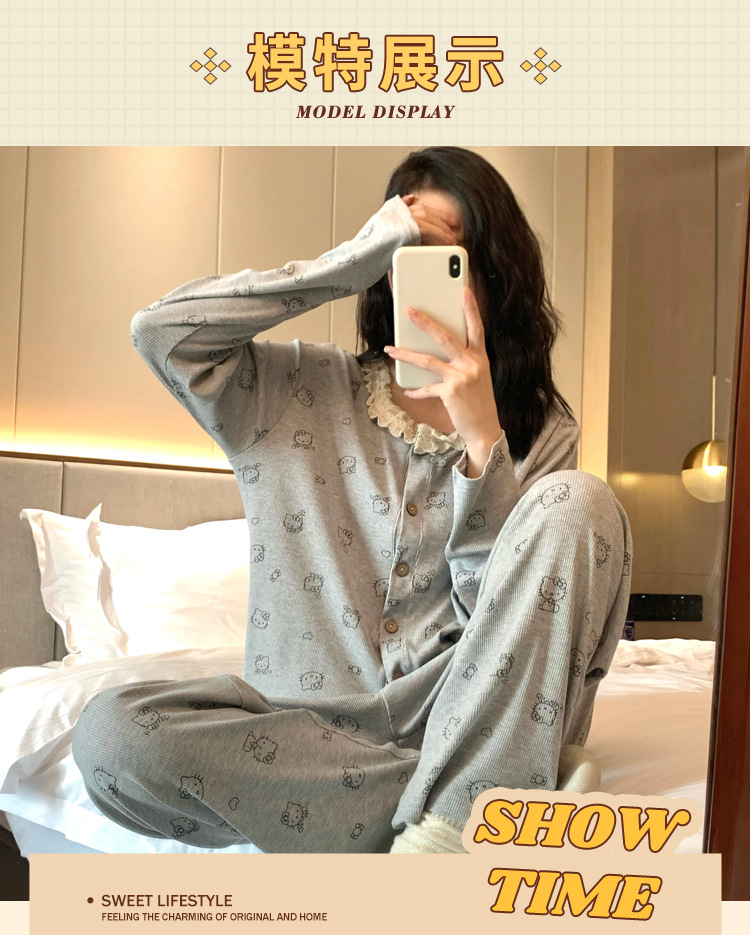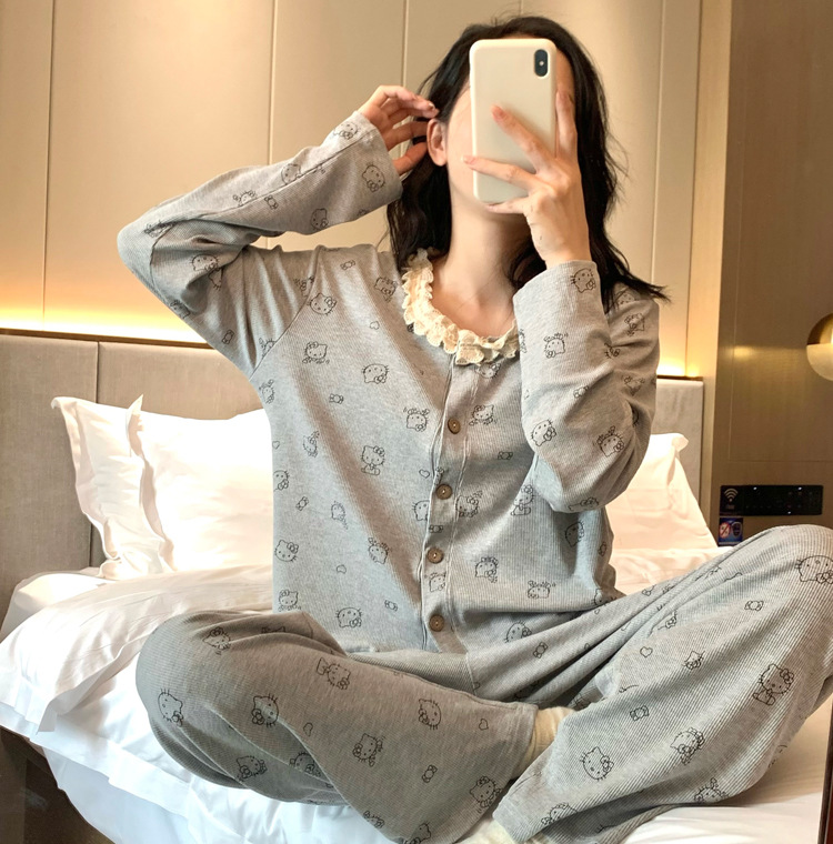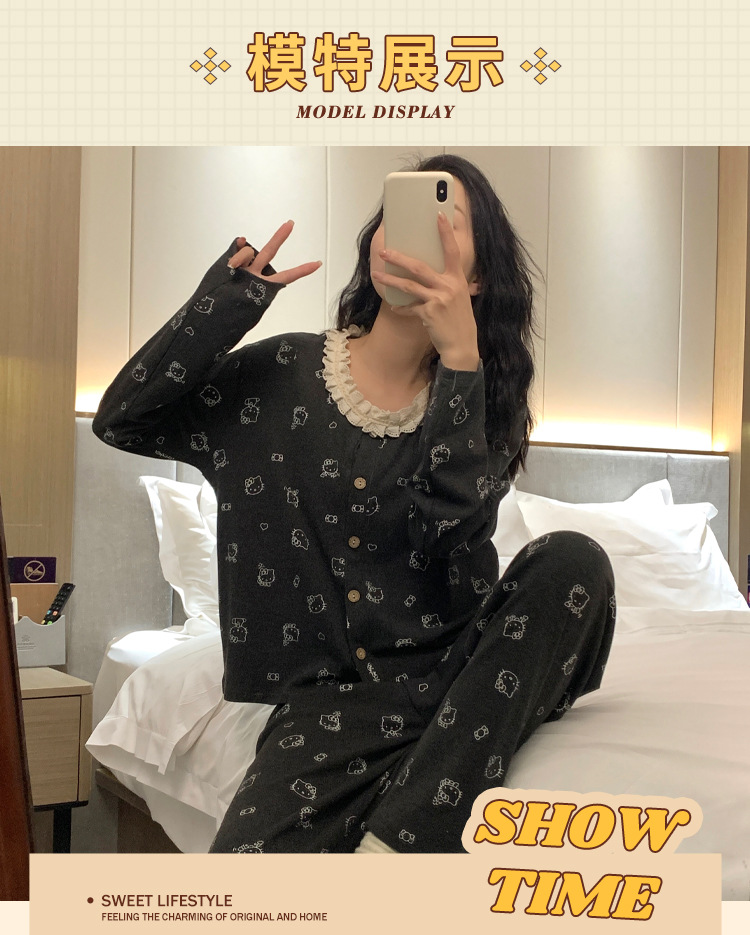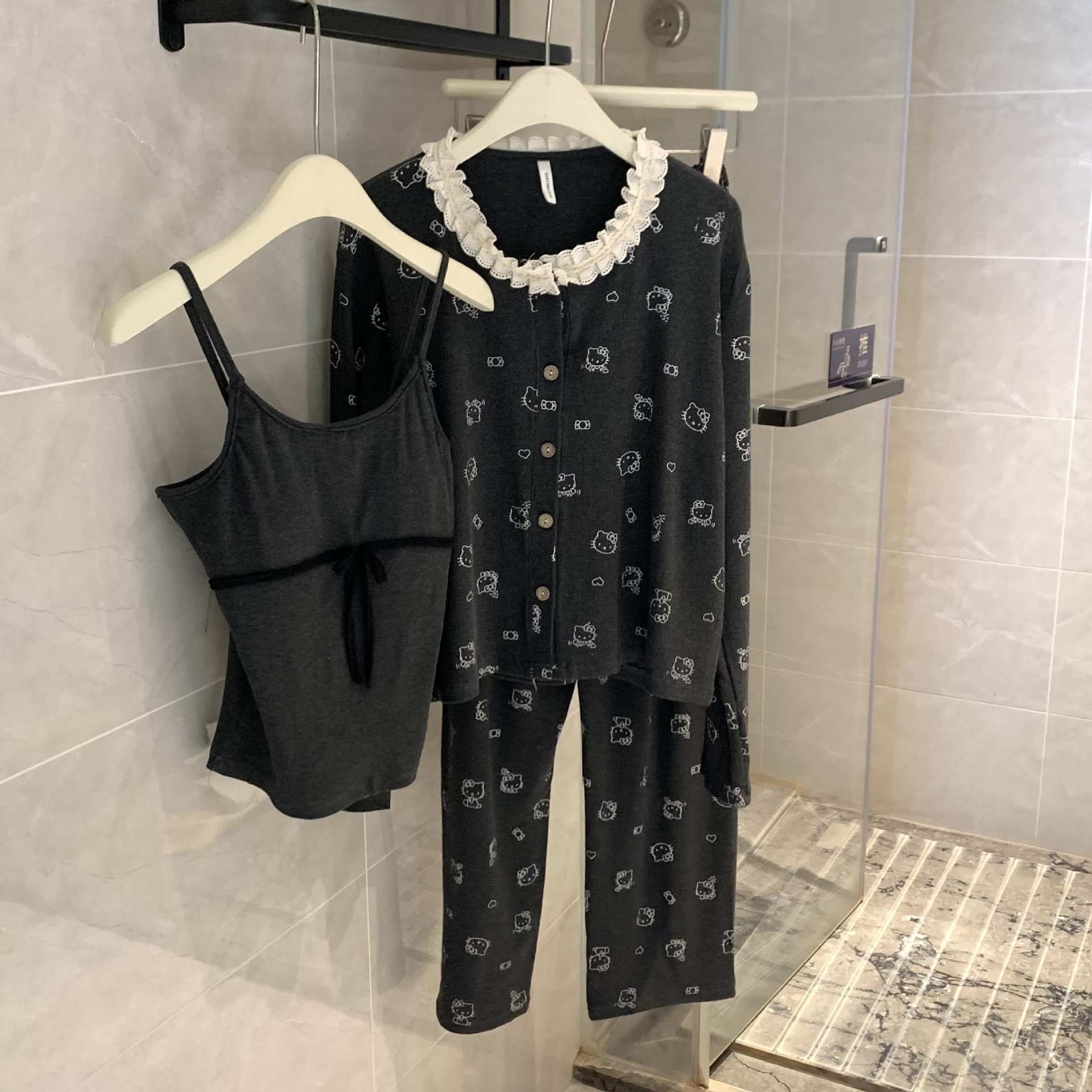 가슴 패드가 달린 게으른 스타일 모달 파자마 여성의 2025 봄과 가을 슬링 긴 소매 카디건 홈 옷 3 피스 세트스토어 가기